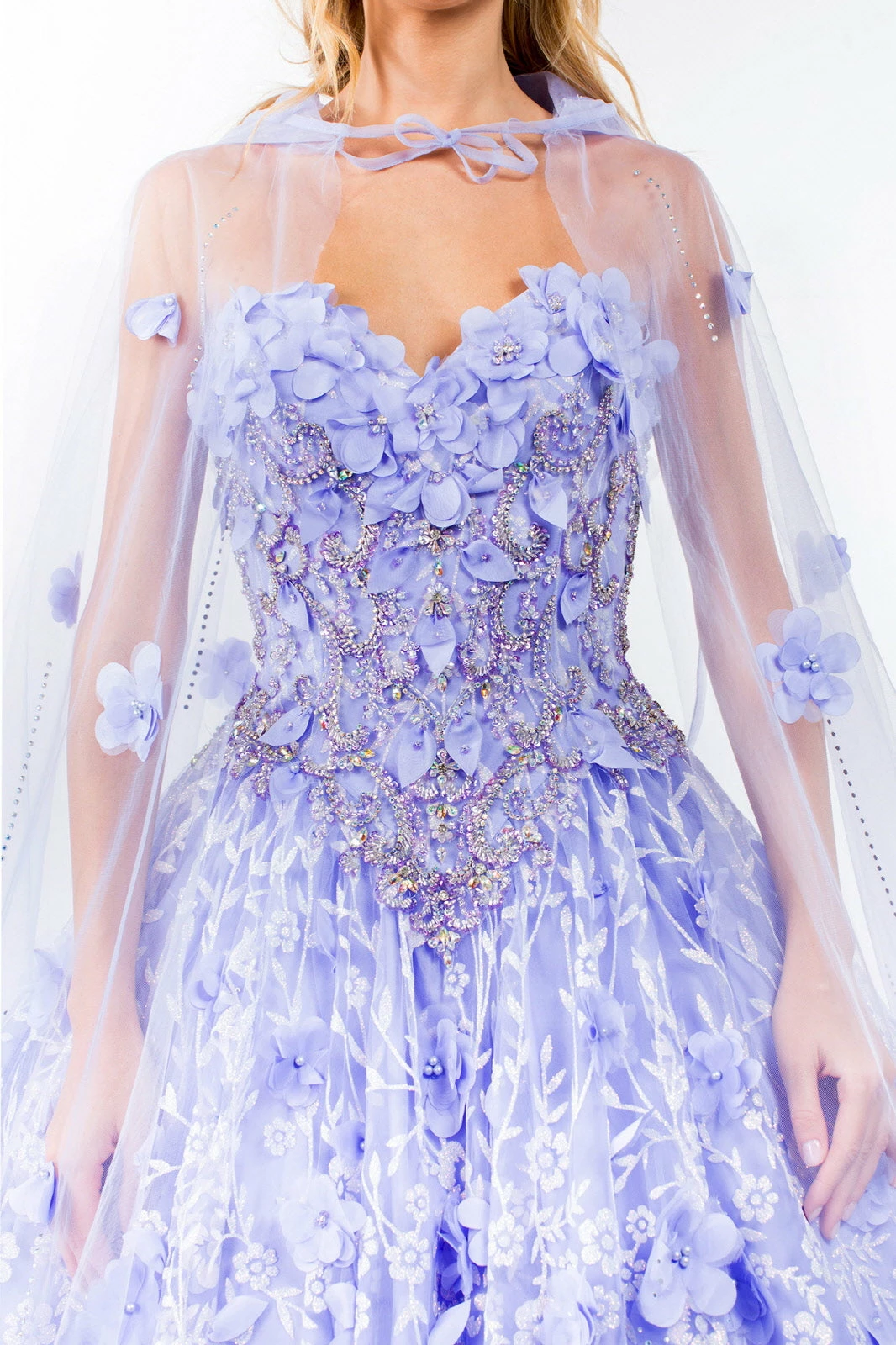 - 3D Floral Cape Ball Gown by Elizabeth K GL1939 (GLS Collective)