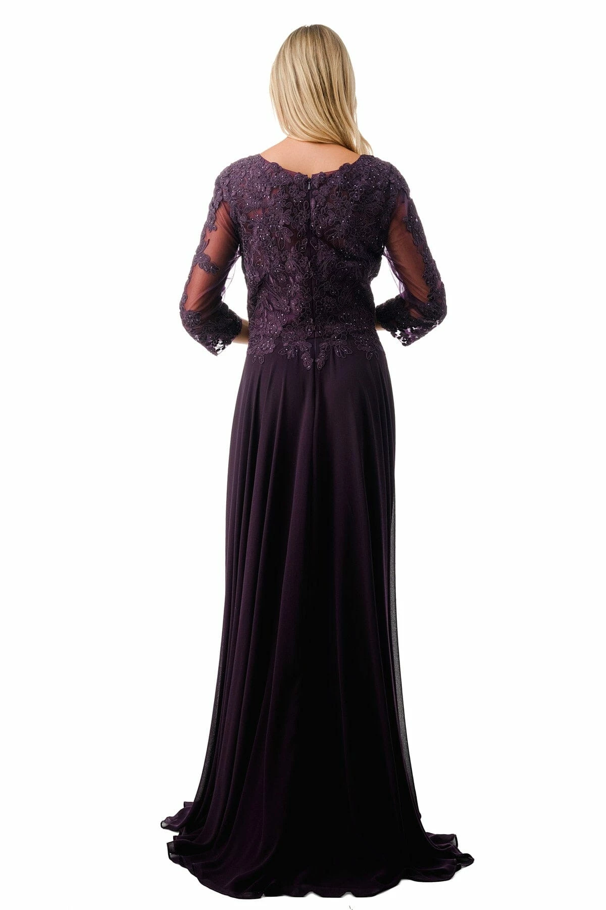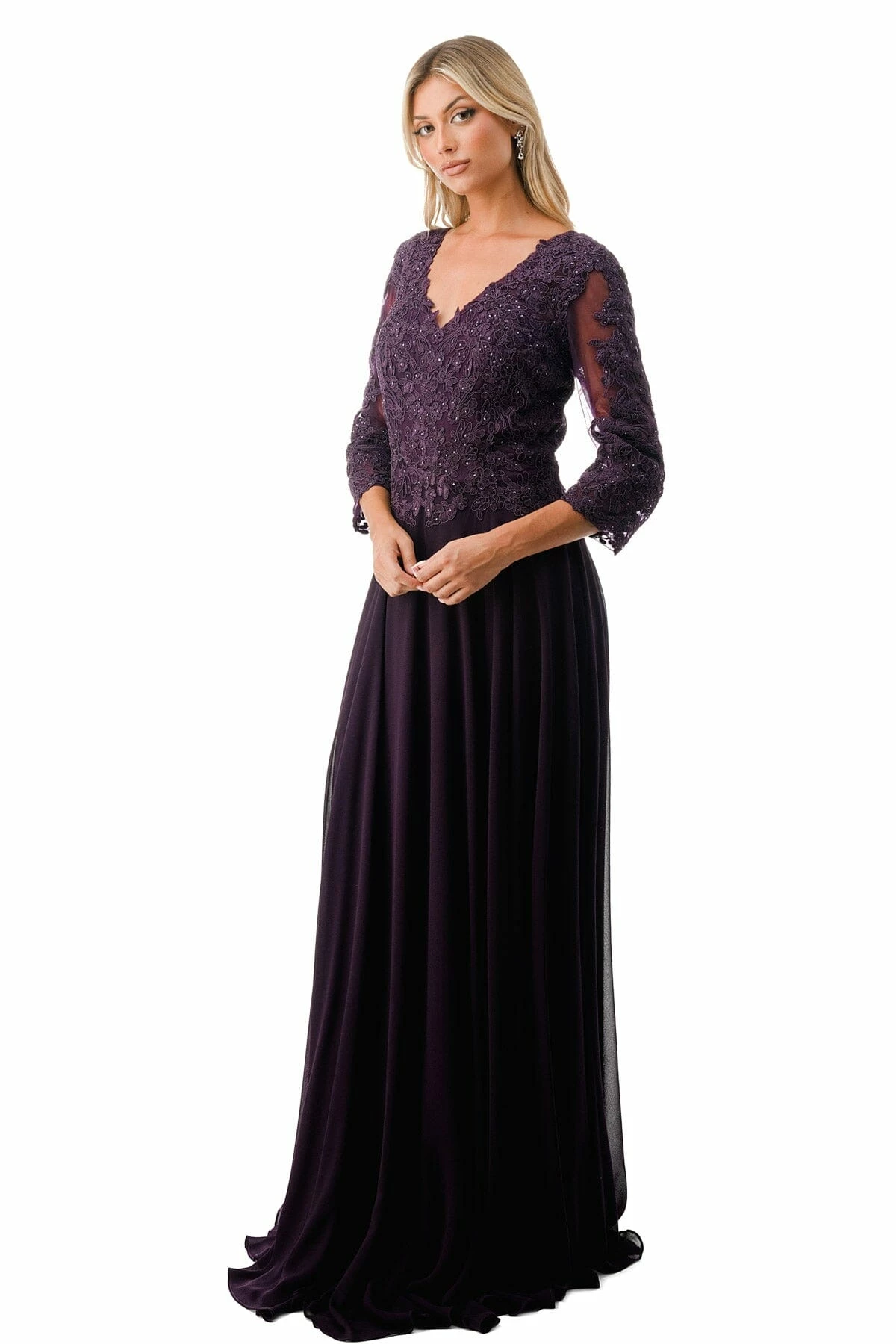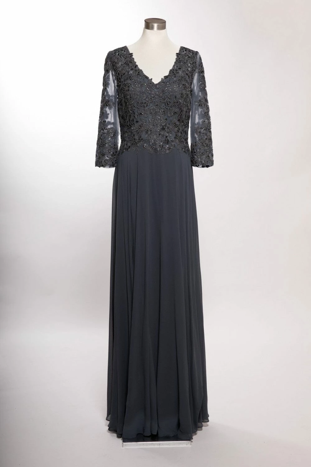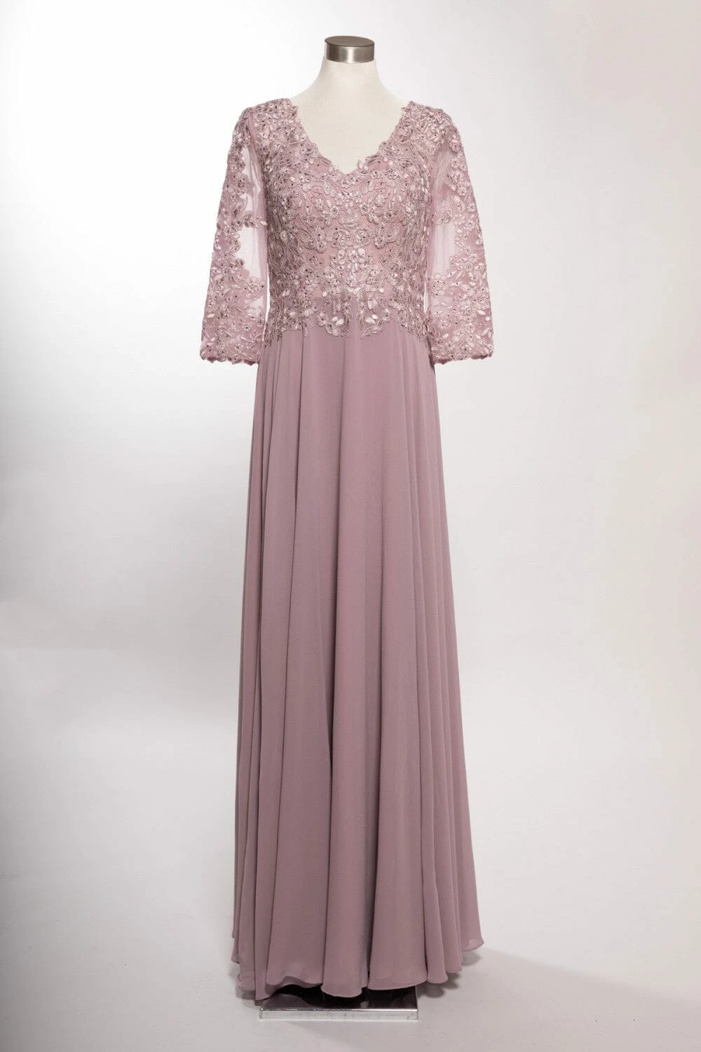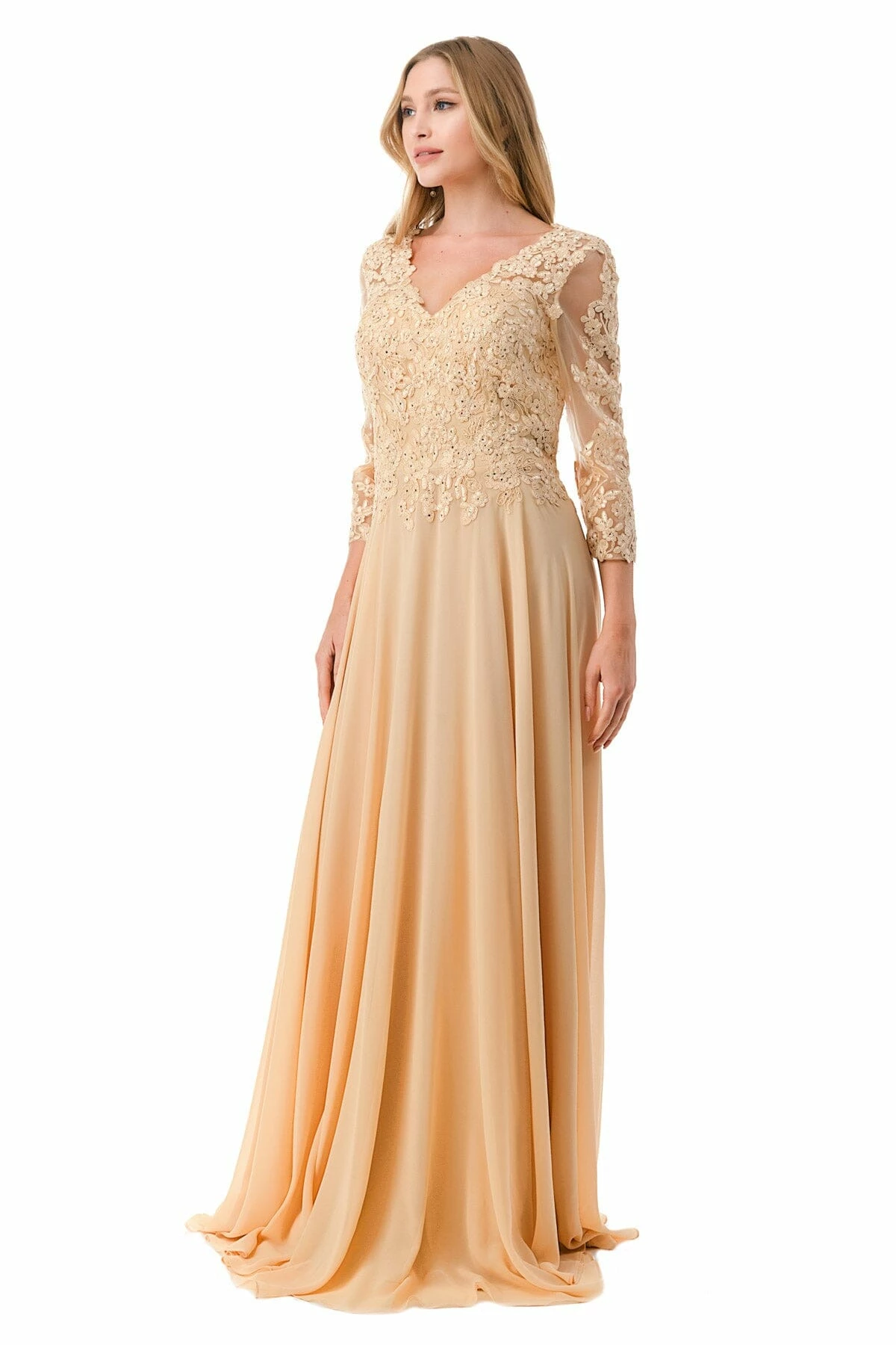 - Applique 3/4 Sleeve A-line Gown by Coya Collection M2758Q