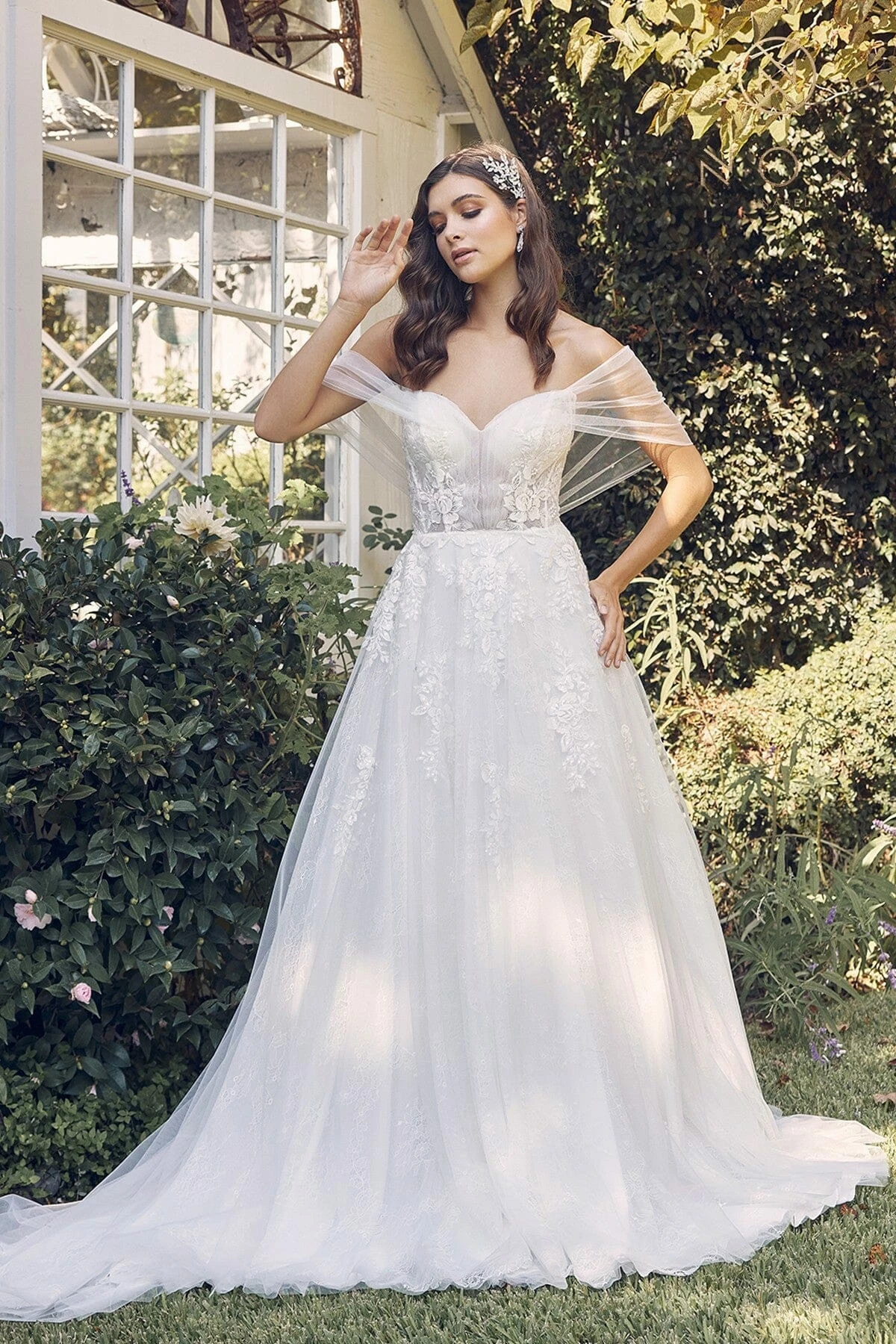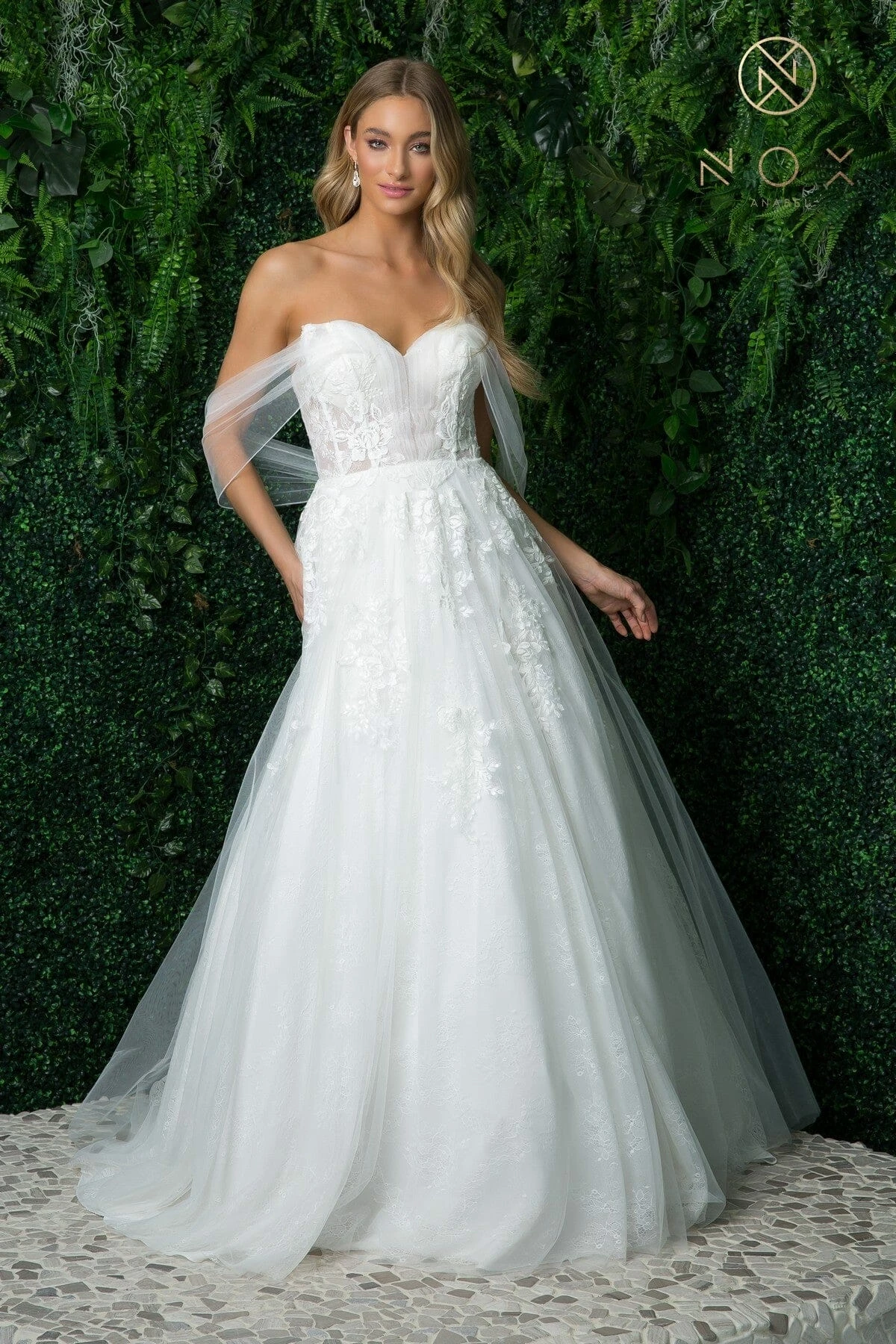 - Applique Off Shoulder Bridal Ball Gown by Nox Anabel JE946