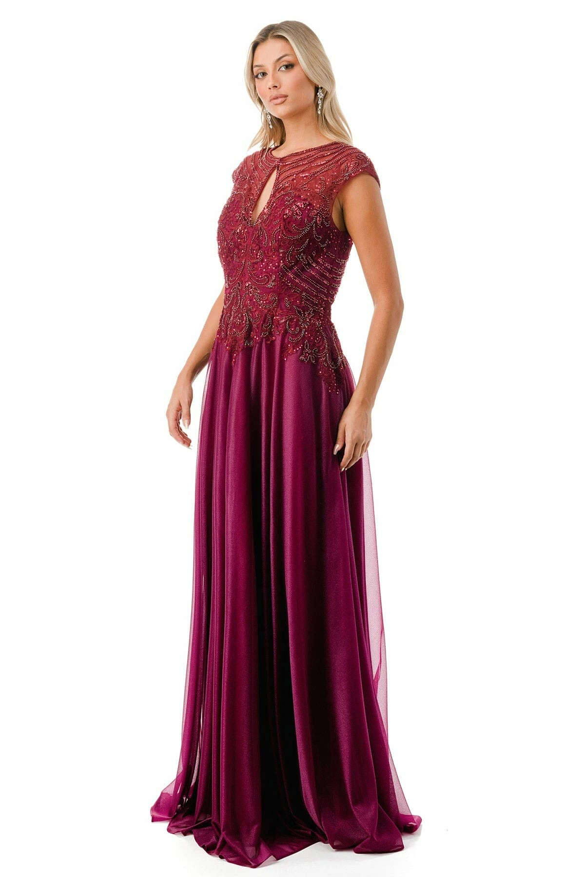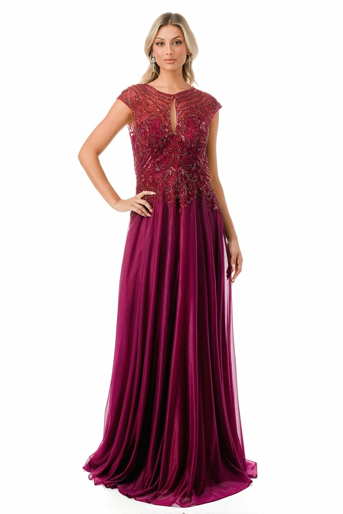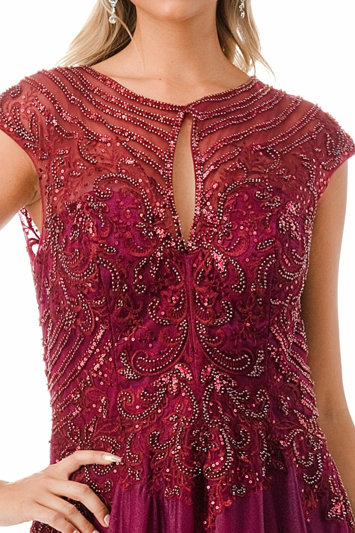 - Bead Embroidered Cap Sleeve A-line Gown by Coya M2736Y