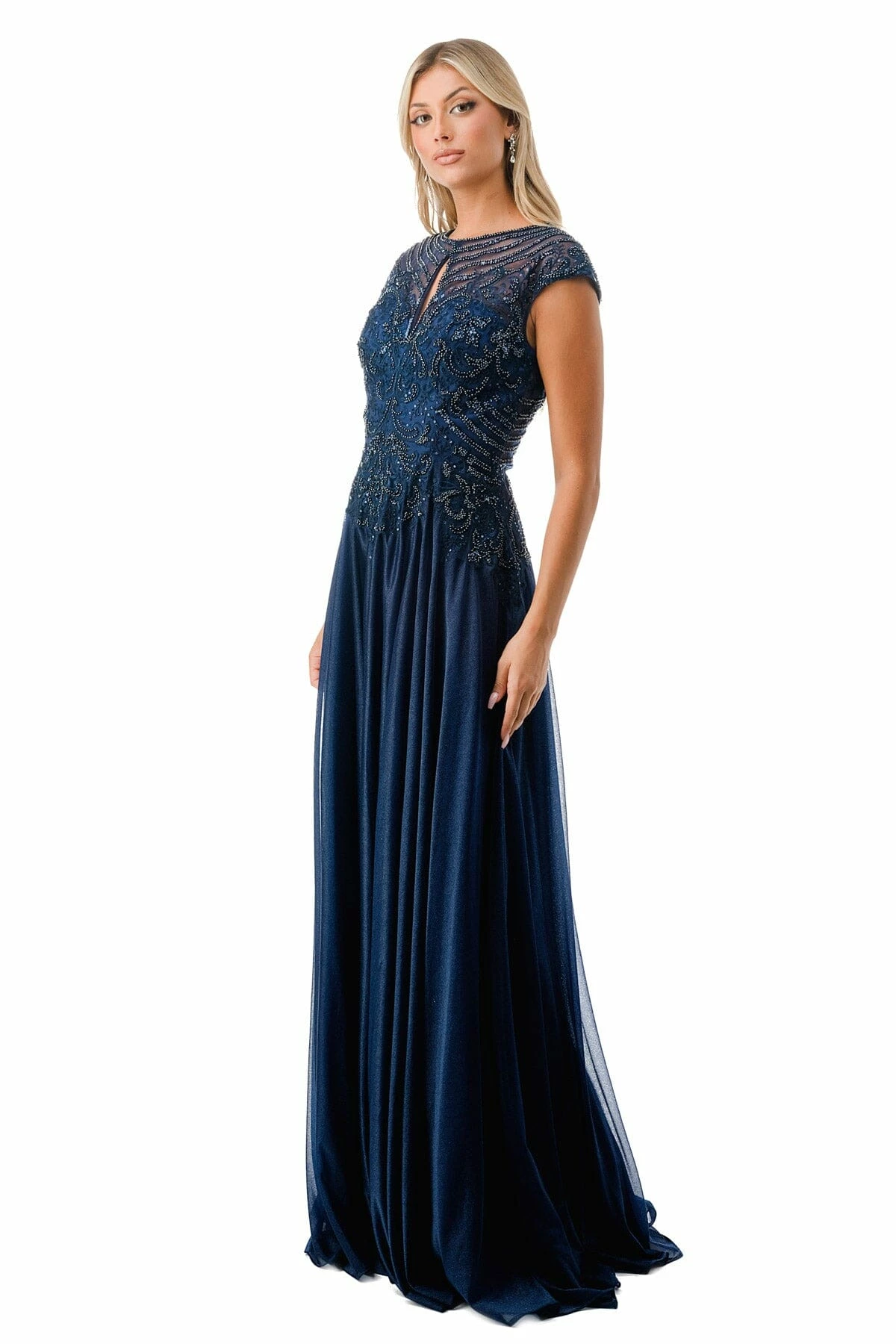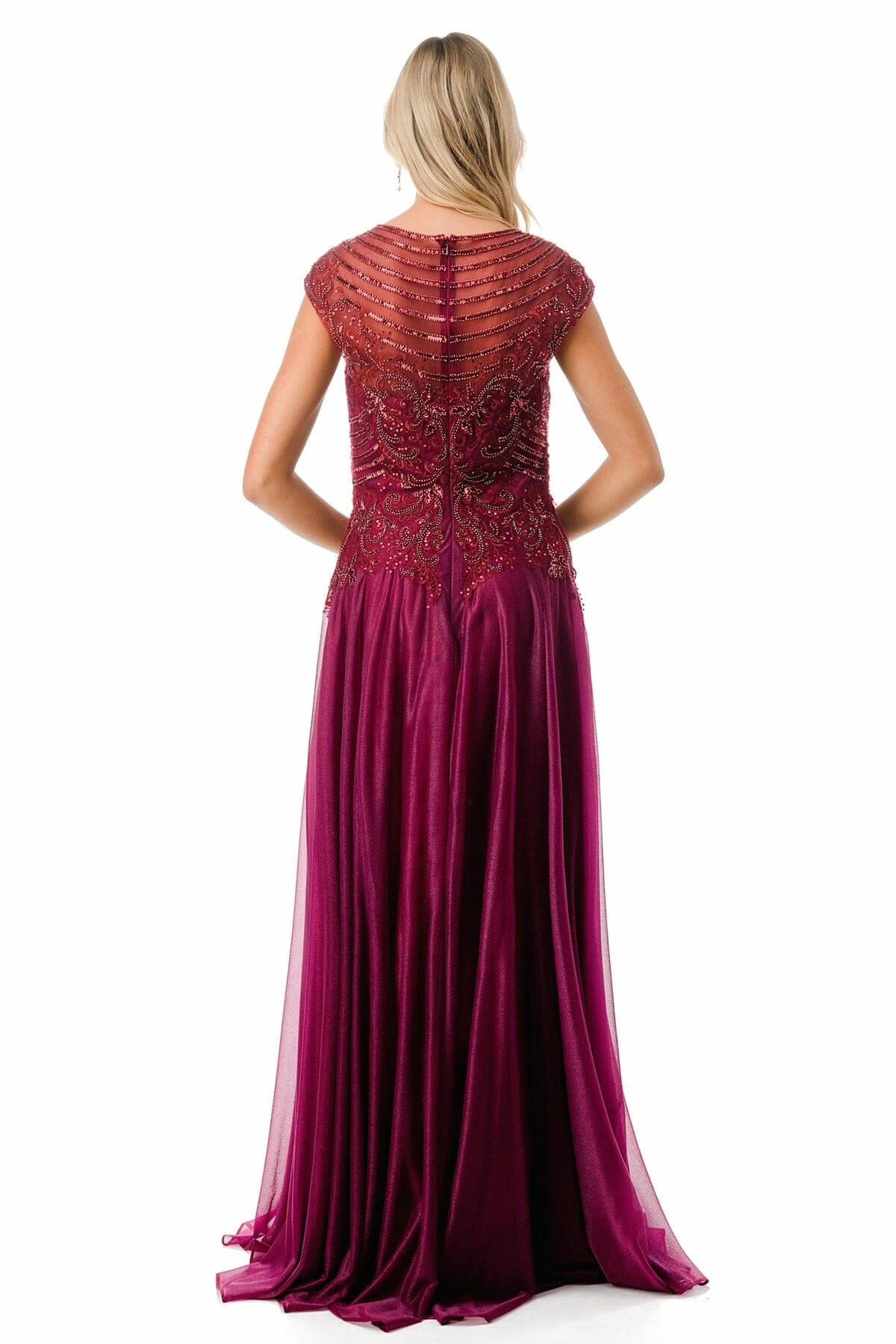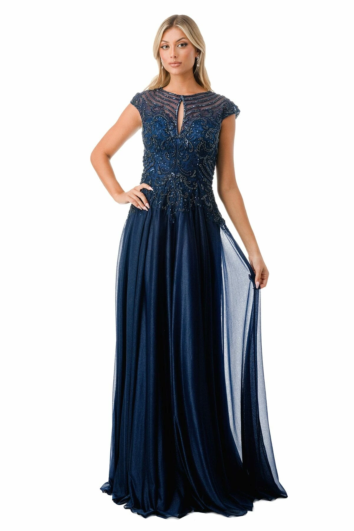 - Bead Embroidered Cap Sleeve A-line Gown by Coya M2736Y