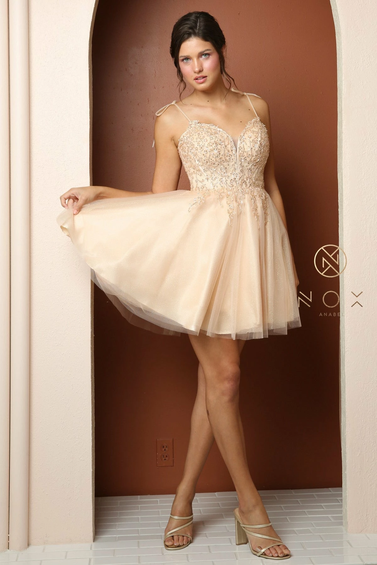 - Beaded Short A-line Dress by Nox Anabel