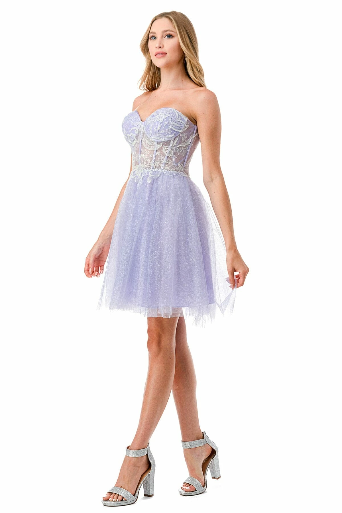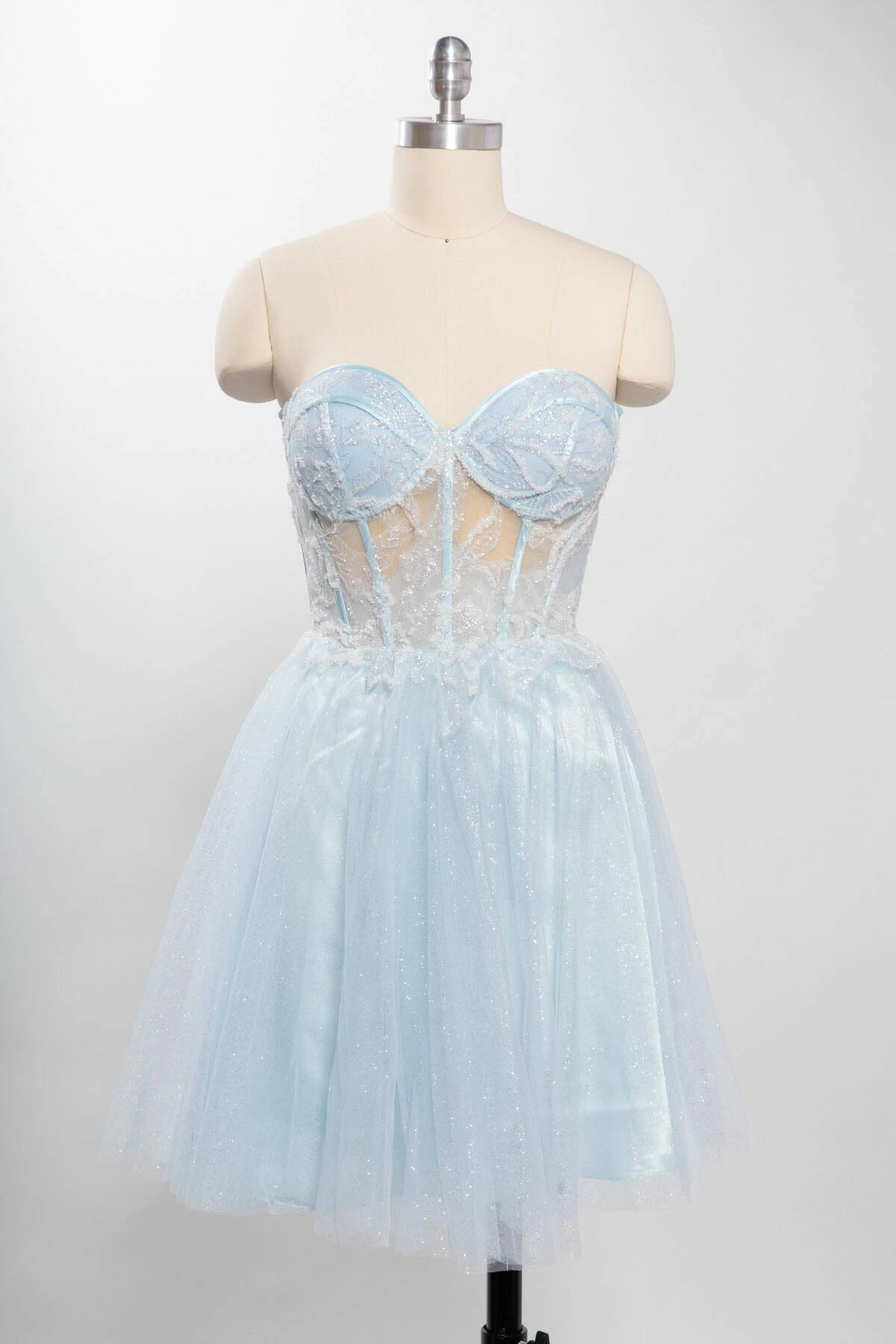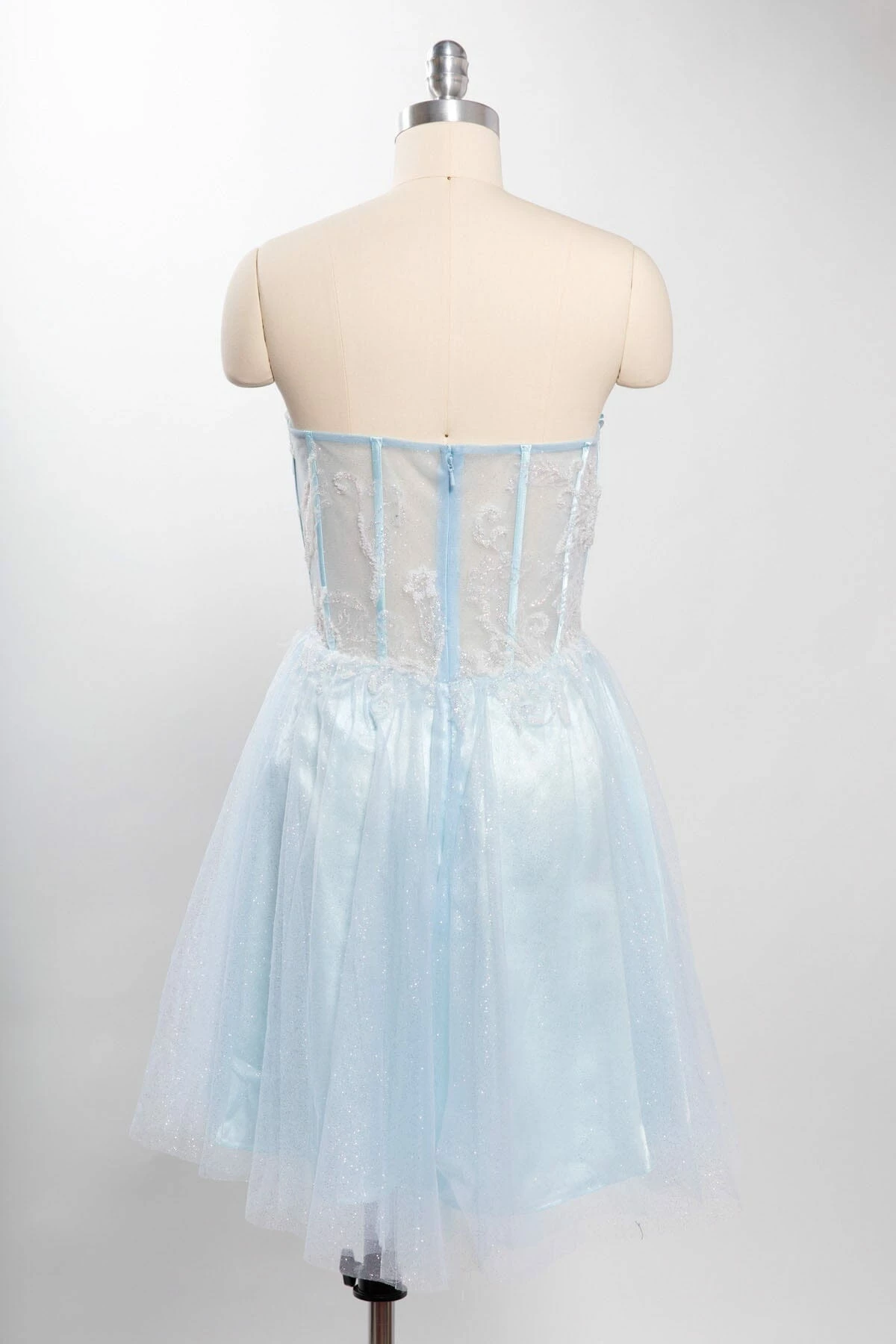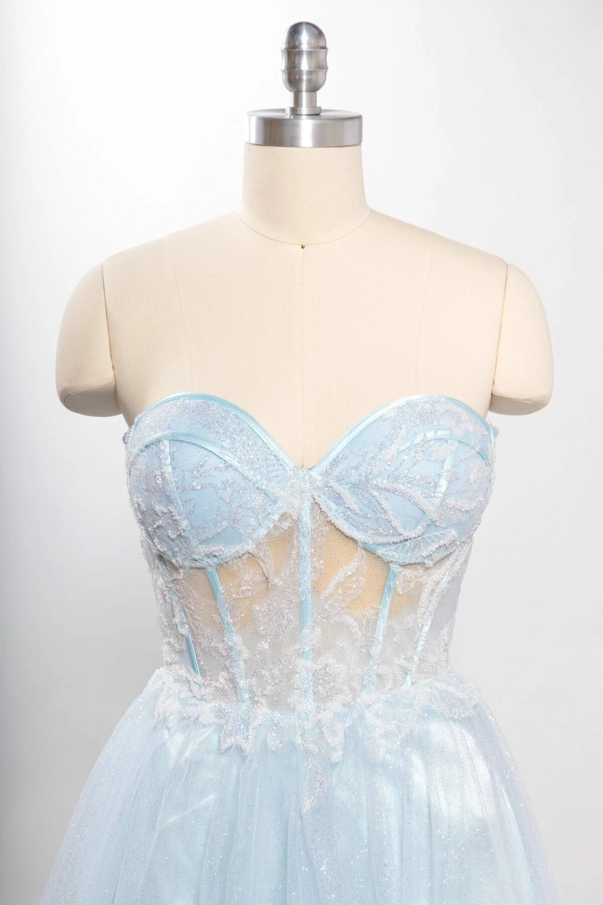 - Strapless sheer sweetheart bodice with corset boning