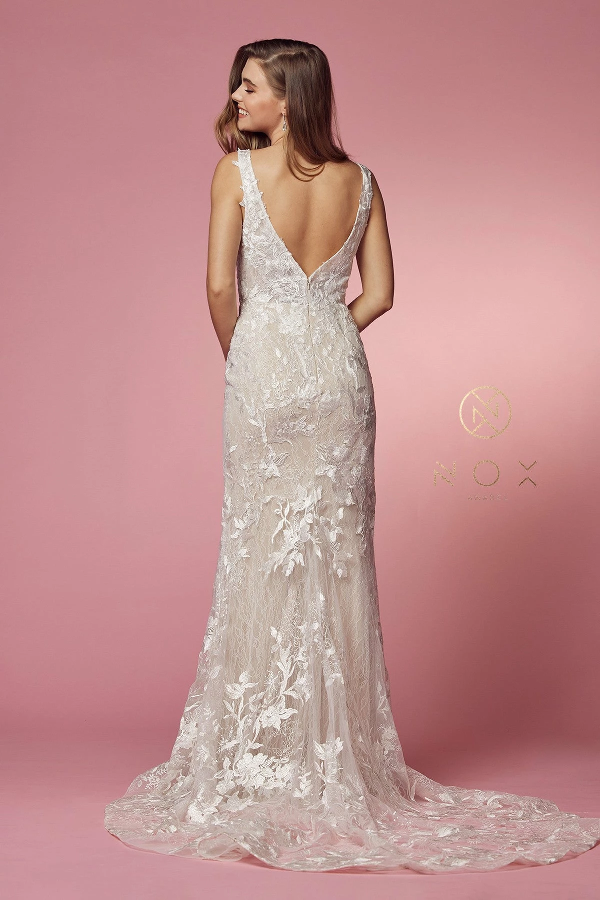 - Fitted Floral Applique Wedding Gown by Nox Anabel JW908
