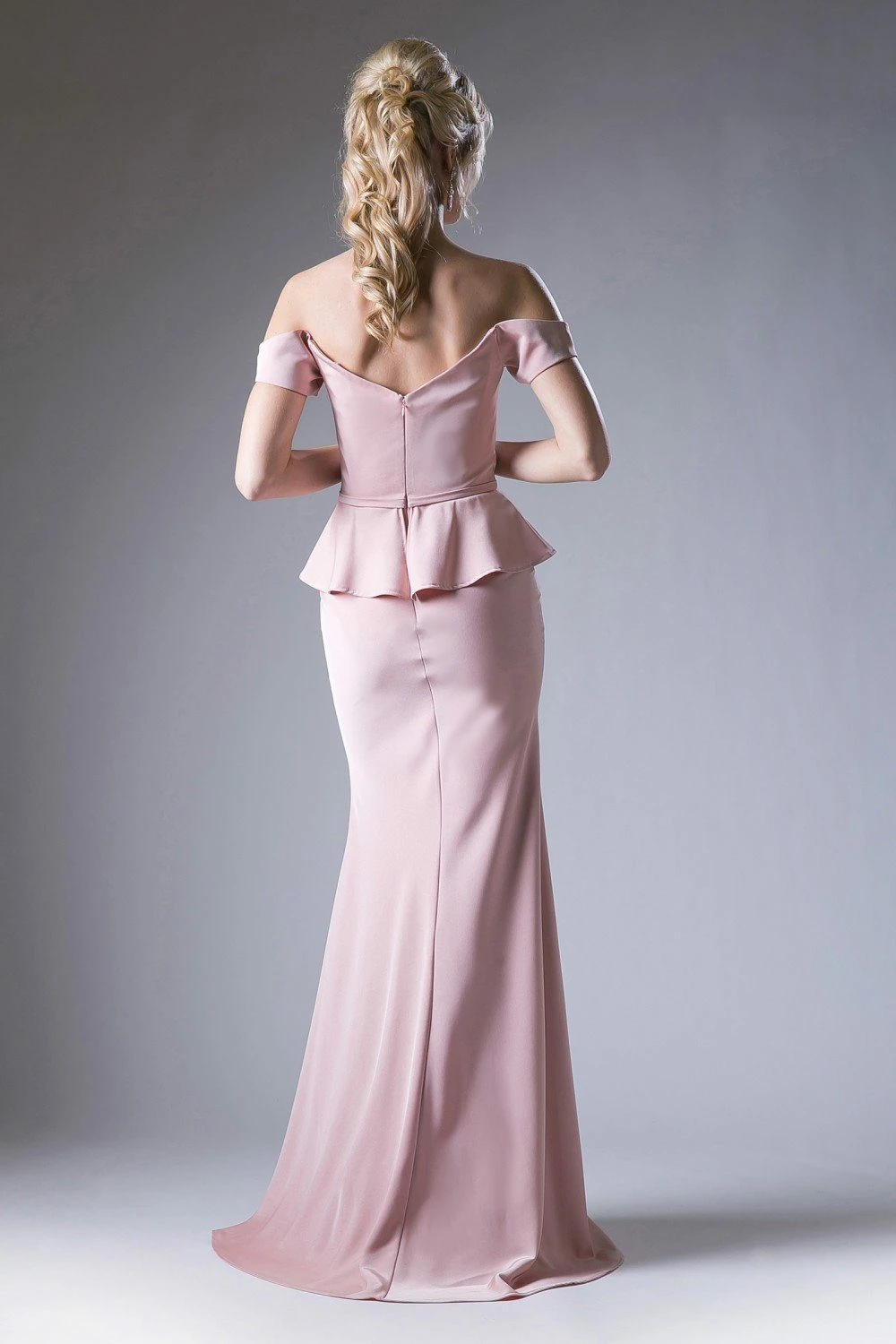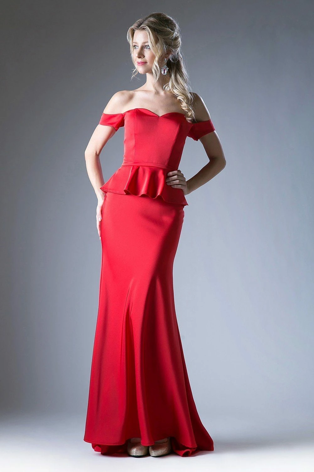 - Fitted Off Shoulder Peplum Gown
