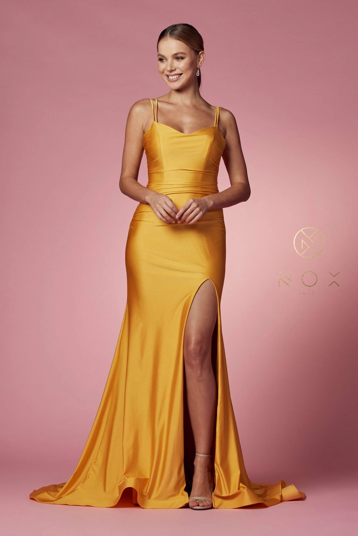 Turn heads in this long sleeveless fitted dress with strappy corset back by Nox Anabel T481.