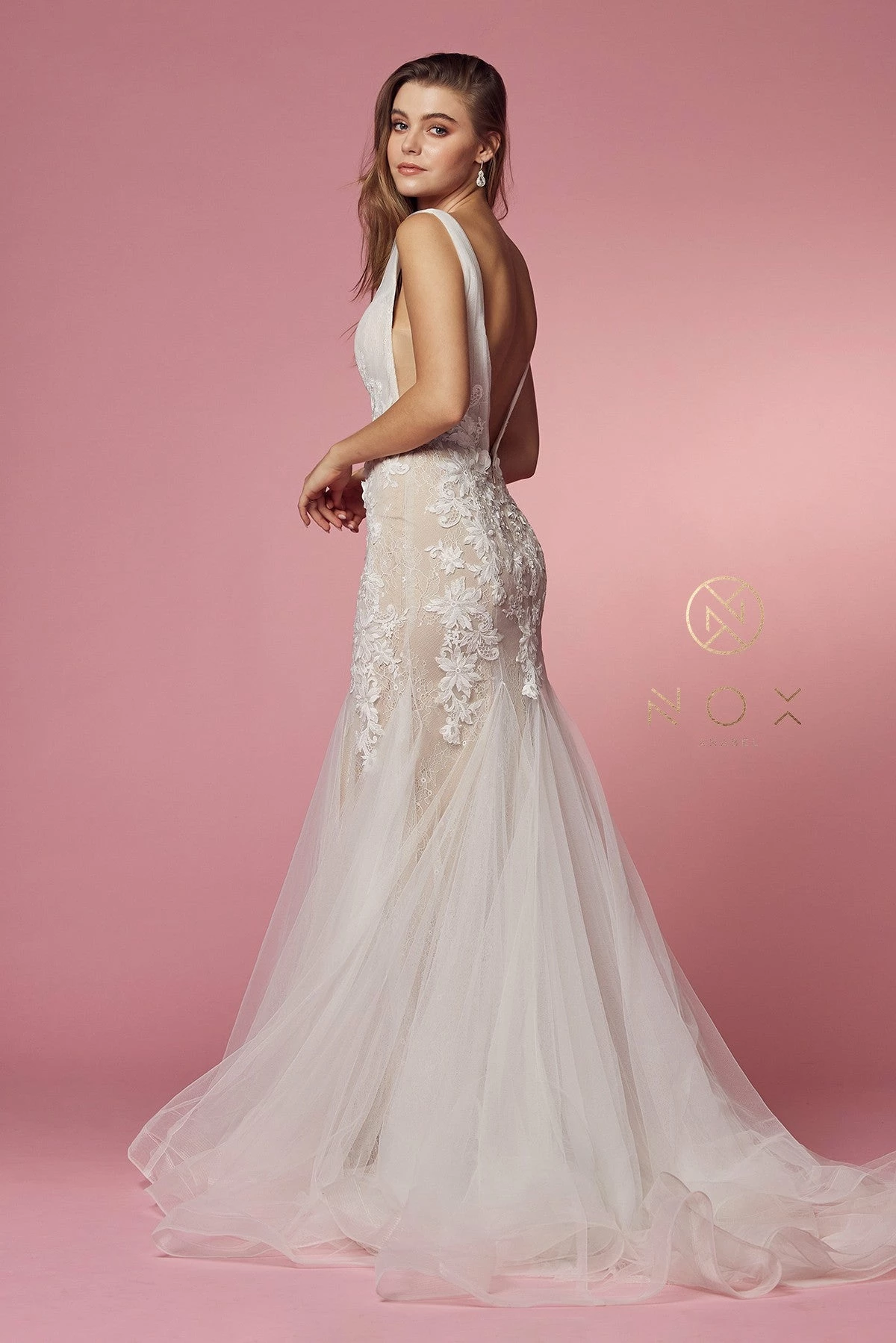 - Floral Applique Mermaid Bridal Gown by Nox Anabel JE917
