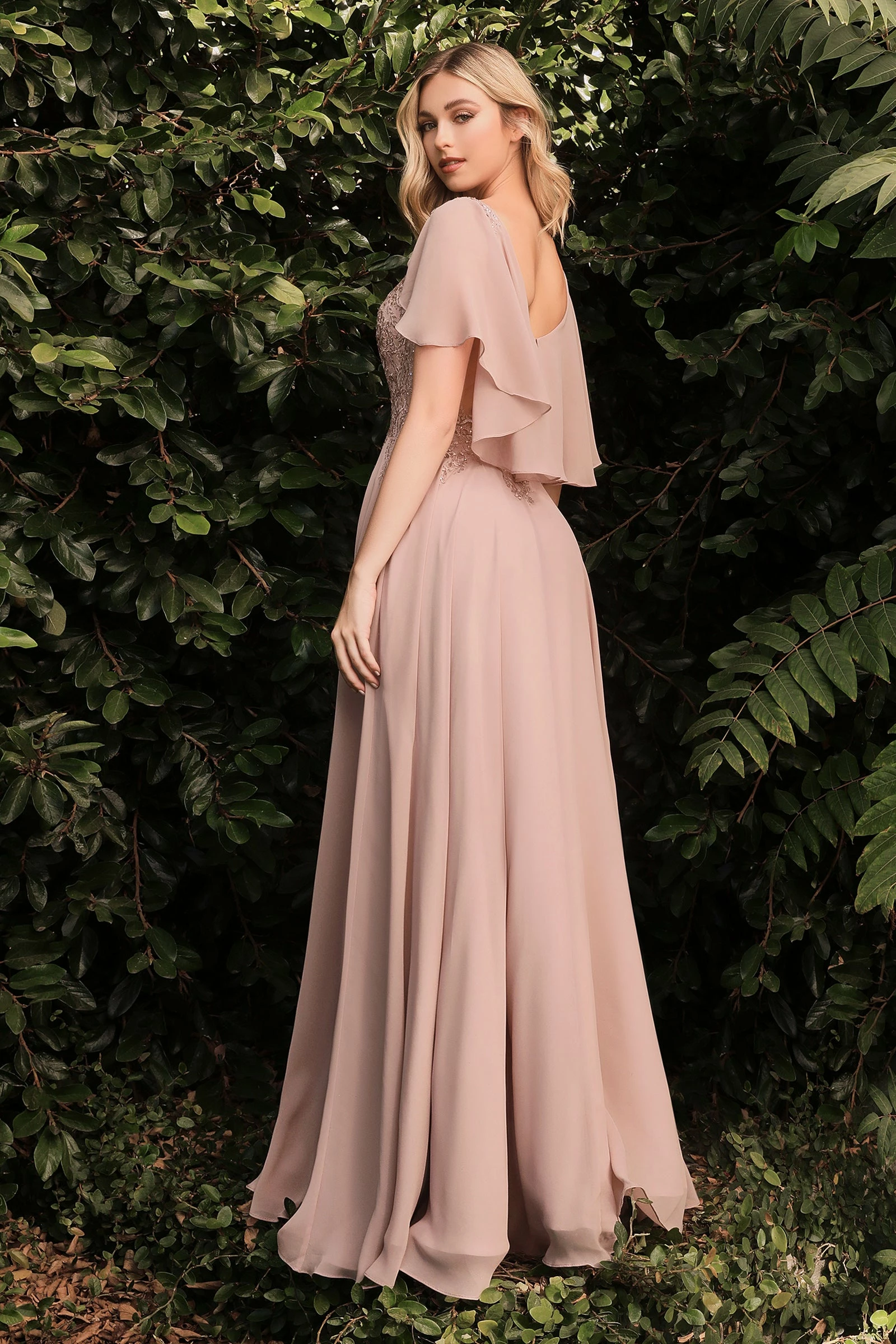 - Long Chiffon Capelet Dress by Cinderella Divine (No Stretch)