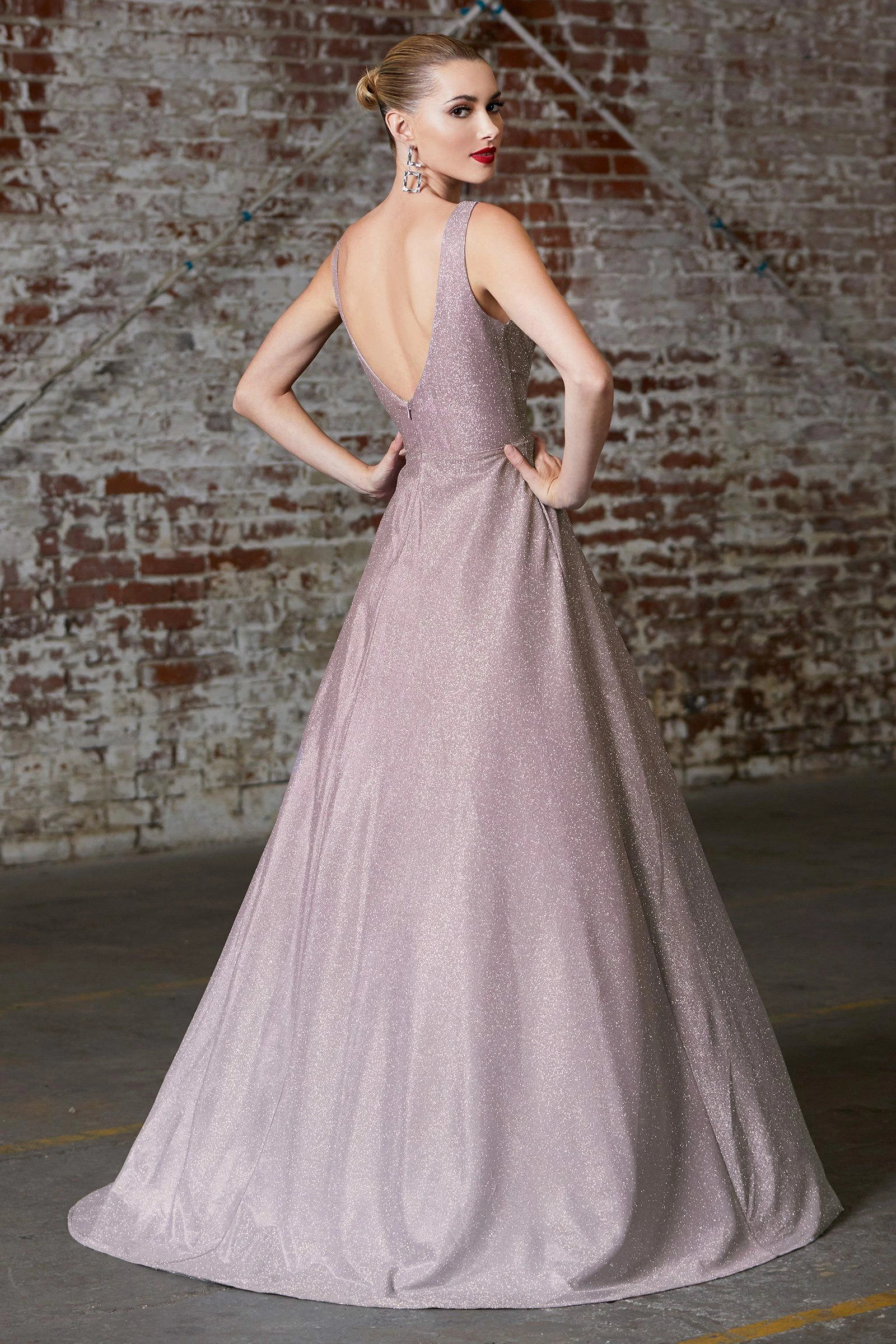 Look picture-perfect in this long a-line metallic glitter ombre dress by Cinderella Divine 9174.
