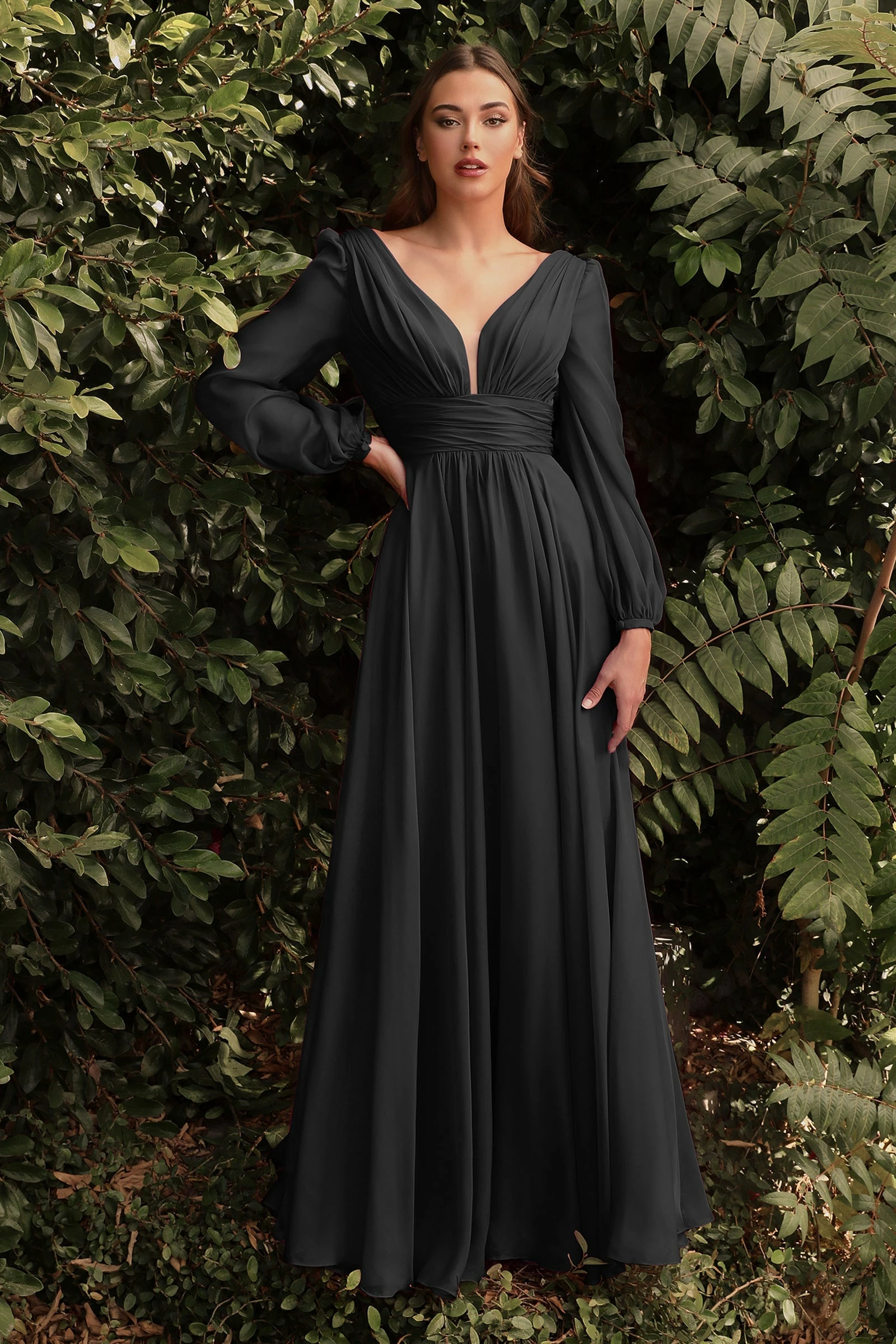 - Long Sleeve Chiffon Gown by Cinderella Divine