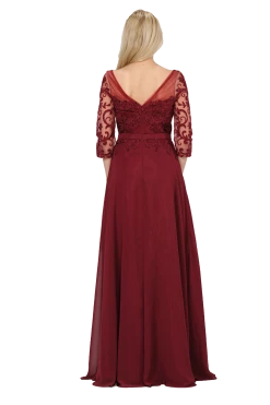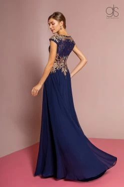 Long Cap Sleeve Dress With Lace Bodice By Elizabeth K GL2519