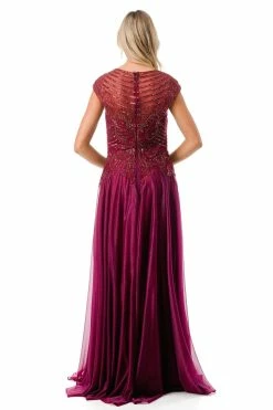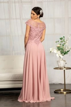 Embellished Long Pink Cap Sleeve Dress By Elizabeth K GL1577
