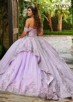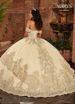 Embroidered Metallic Glitter Off Shoulder Gown By Adora 3092