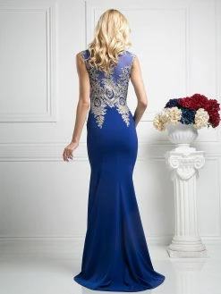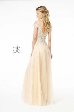 Embroidered Long Sheer Cold Shoulder Dress By Elizabeth K GL2953
