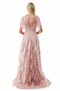 Floral Lace Long V-Neck Dress With Sleeves By Elizabeth K GL2825
