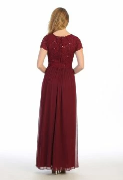 Long A-line Lace Bodice Dress With Short Sleeves By Celavie 6469