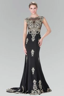 Long Cap Sleeve Dress With Lace Applique By Elizabeth K GL2407