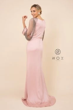 Long Fitted Dress With Beaded Puff Sleeves By Nox Anabel Y410