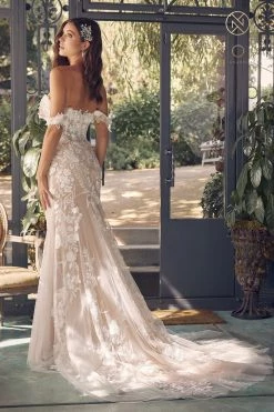 Applique Off Shoulder Bridal Gown By Nox Anabel C1107W – Outlet