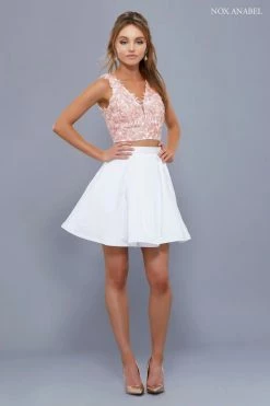 Short Two Piece Dress With Embroidered Top By Nox Anabel 6344