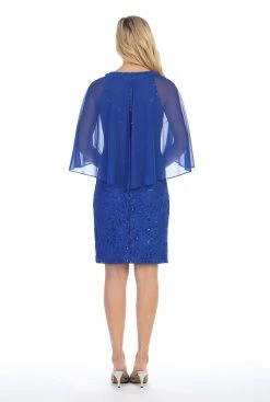 Sequin Lace Short Cape Dress With Flutter Sleeves By Celavie 6352-S