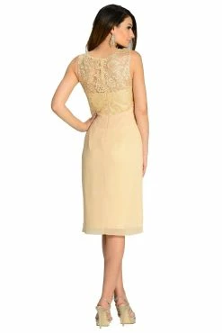 Short Knee Length Lace Dress With Short Sleeves By Poly USA 8090