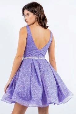 Short Metallic Glitter V-Neck Dress By Cinderella Couture 8013J