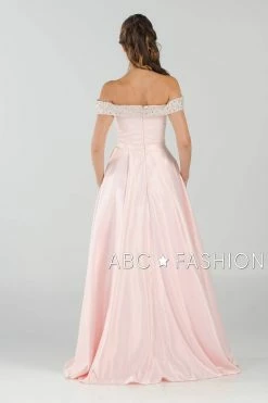Long Beaded Off The Shoulder Dress With Pockets By Poly USA 8242