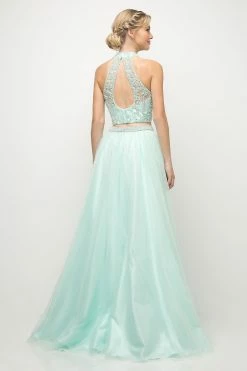 Beaded Short Two-Piece Halter Dress With Sheer Back By Juliet 767
