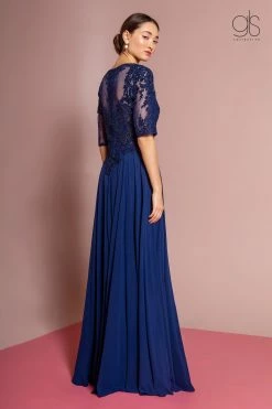 Long Embroidered Dress With Mid-Sleeves By Elizabeth K GL2812