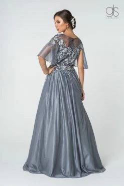 Long Lace Bodice Dress With Cap Sleeves By Elizabeth K GL2828