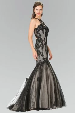 Long High-Neck Jersey Dress With Side Slit By Elizabeth K GL2669