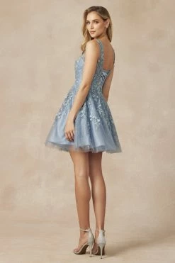 Embroidered Long Cap Sleeve Dress With Sheer Back By Juliet 585