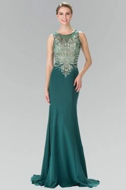 Embroidered Long Sheer Cold Shoulder Dress By Elizabeth K GL2953