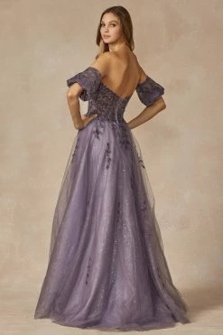 Embroidered Metallic Glitter Off Shoulder Gown By Adora 3092
