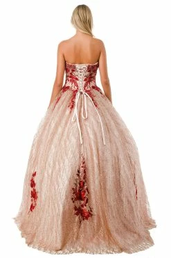 Floral Lace Long V-Neck Dress With Sleeves By Elizabeth K GL2825