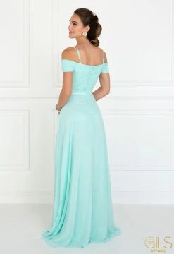 Ruched Long V-Neck Dress With Corset Back By Elizabeth K GL1816