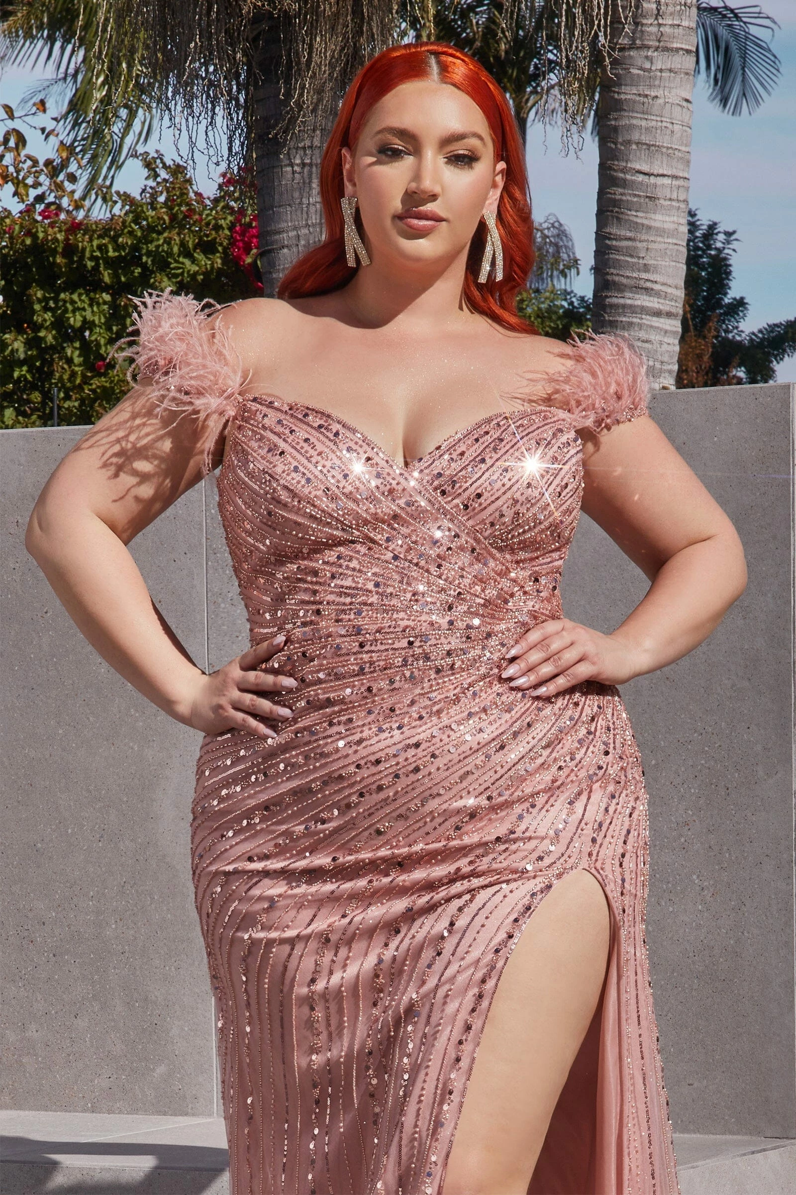 - Sequin Off Shoulder Feather Gown by Ladivine CD0207C