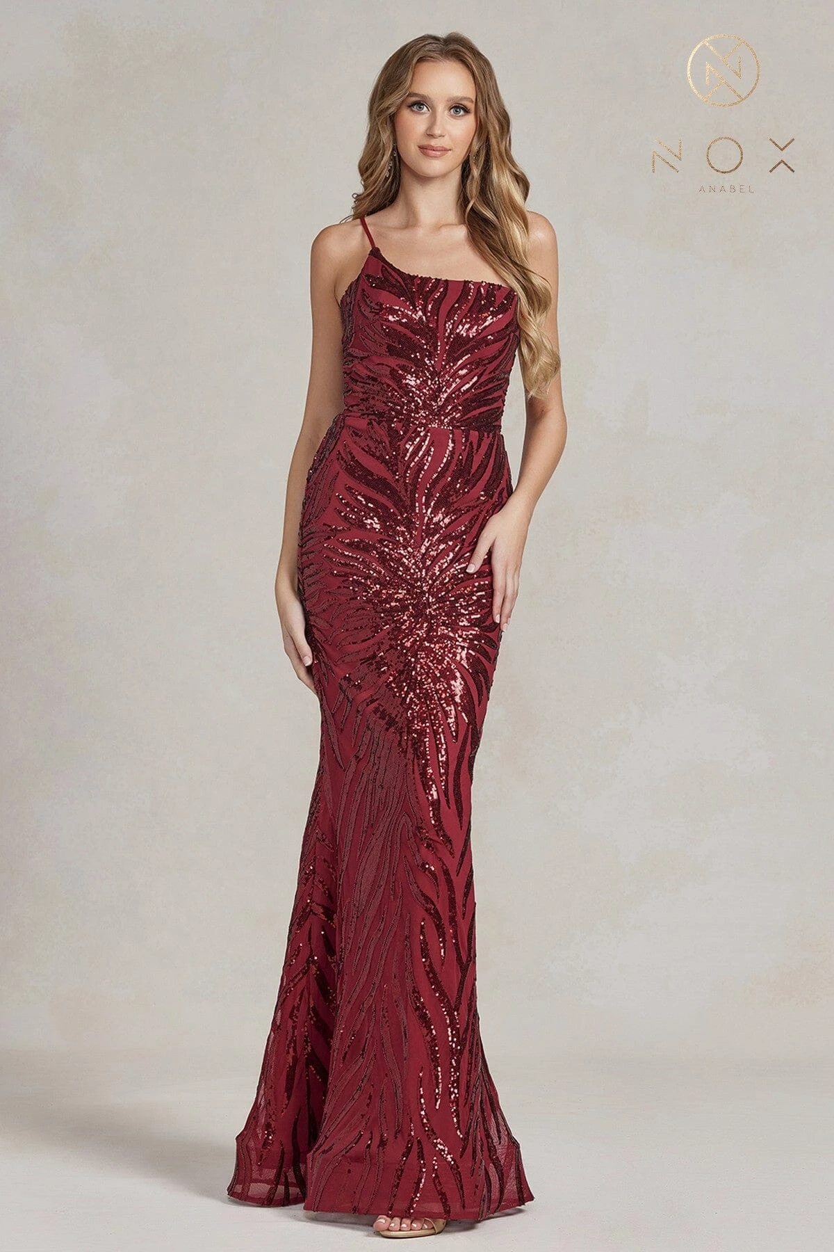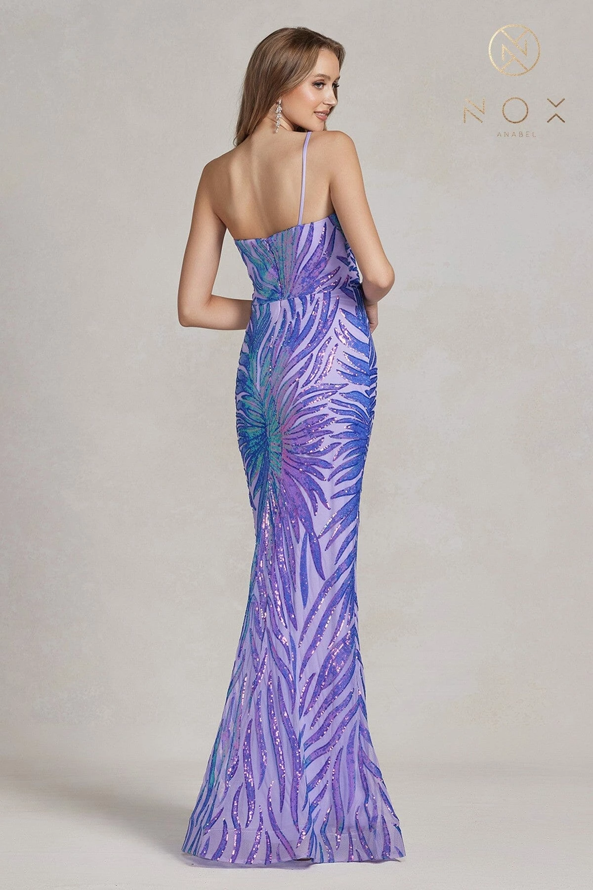 - Sequin Print One Shoulder Gown by Nox Anabel R1204