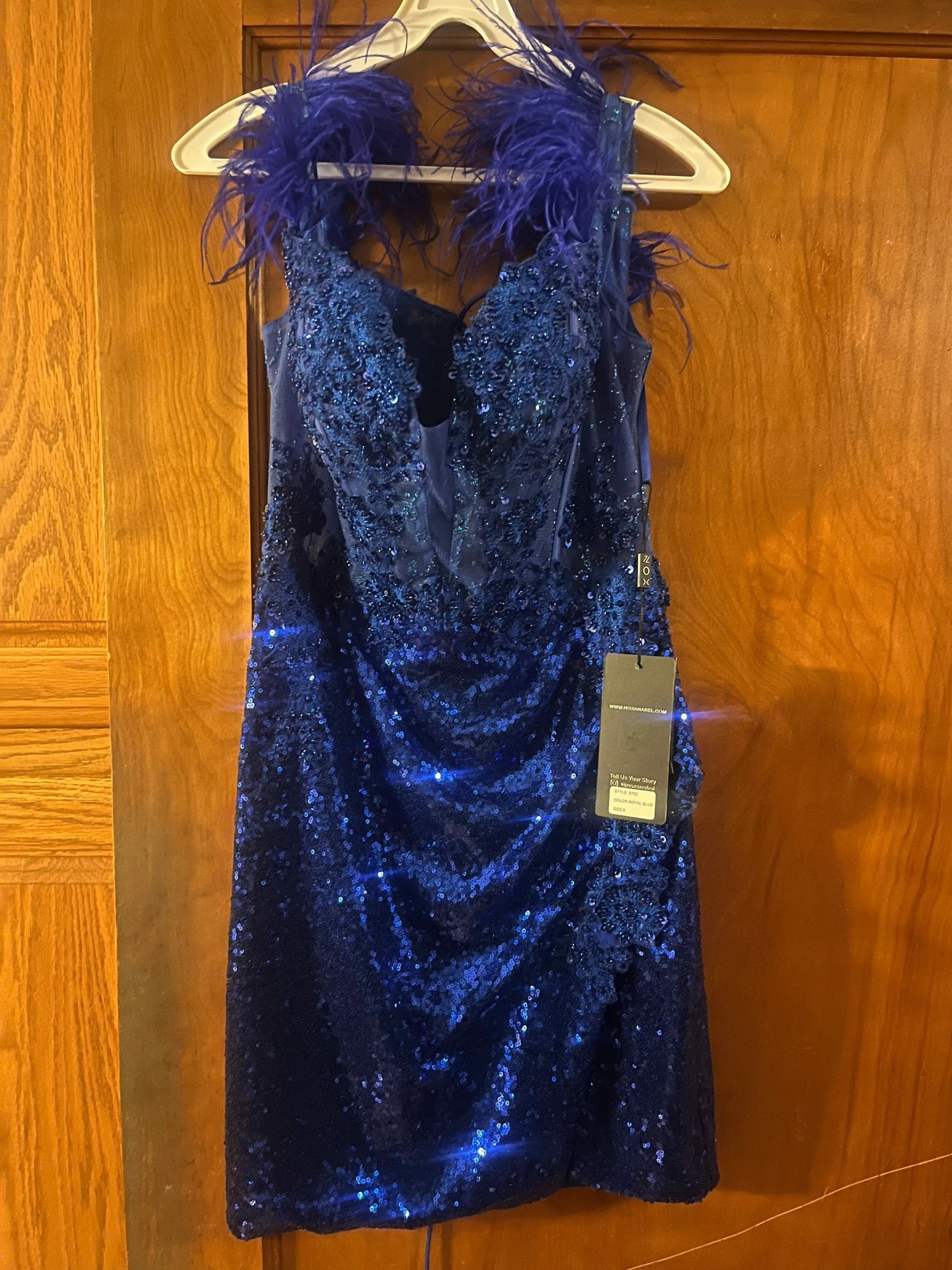 - Sequin Short Off Shoulder Feather Dress by Nox Anabel S782