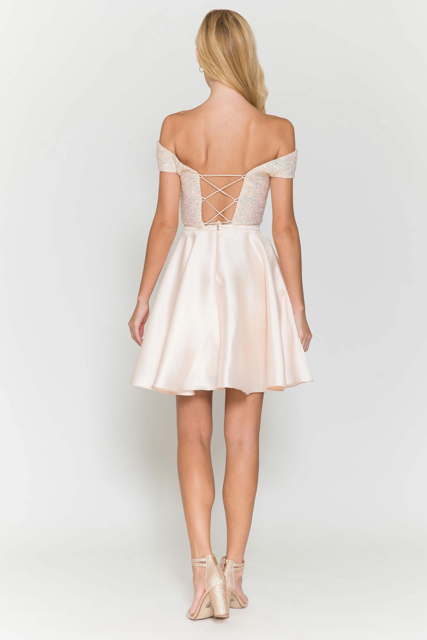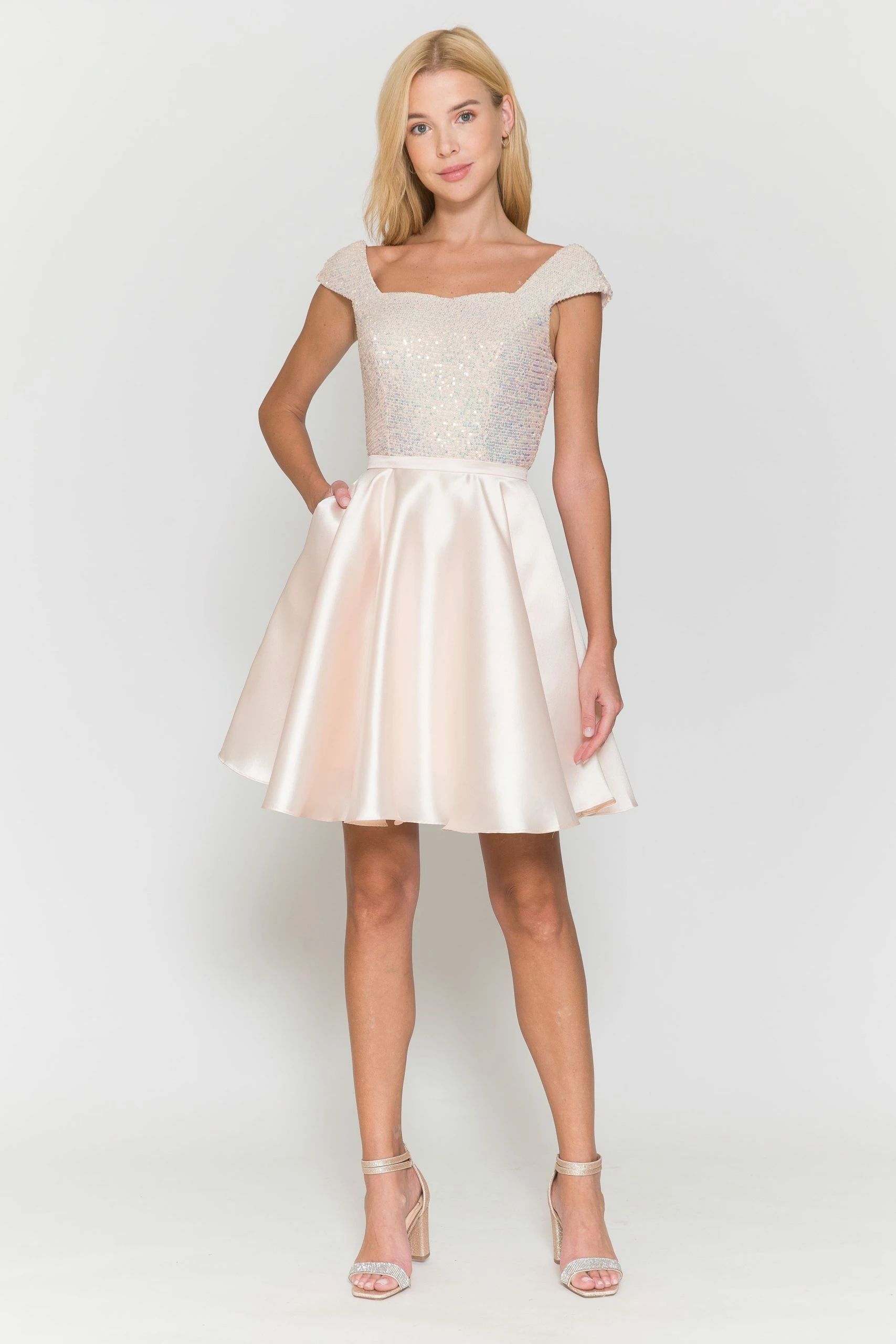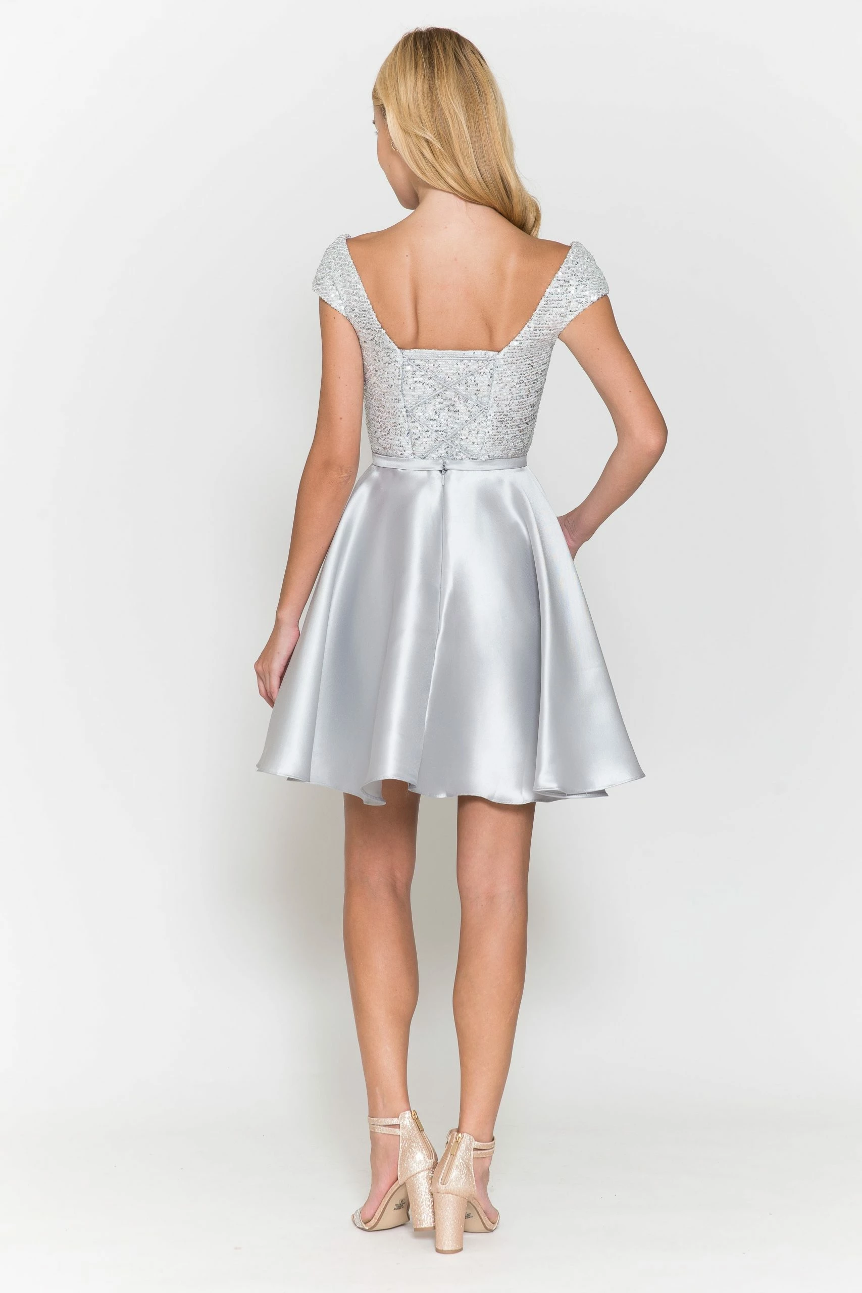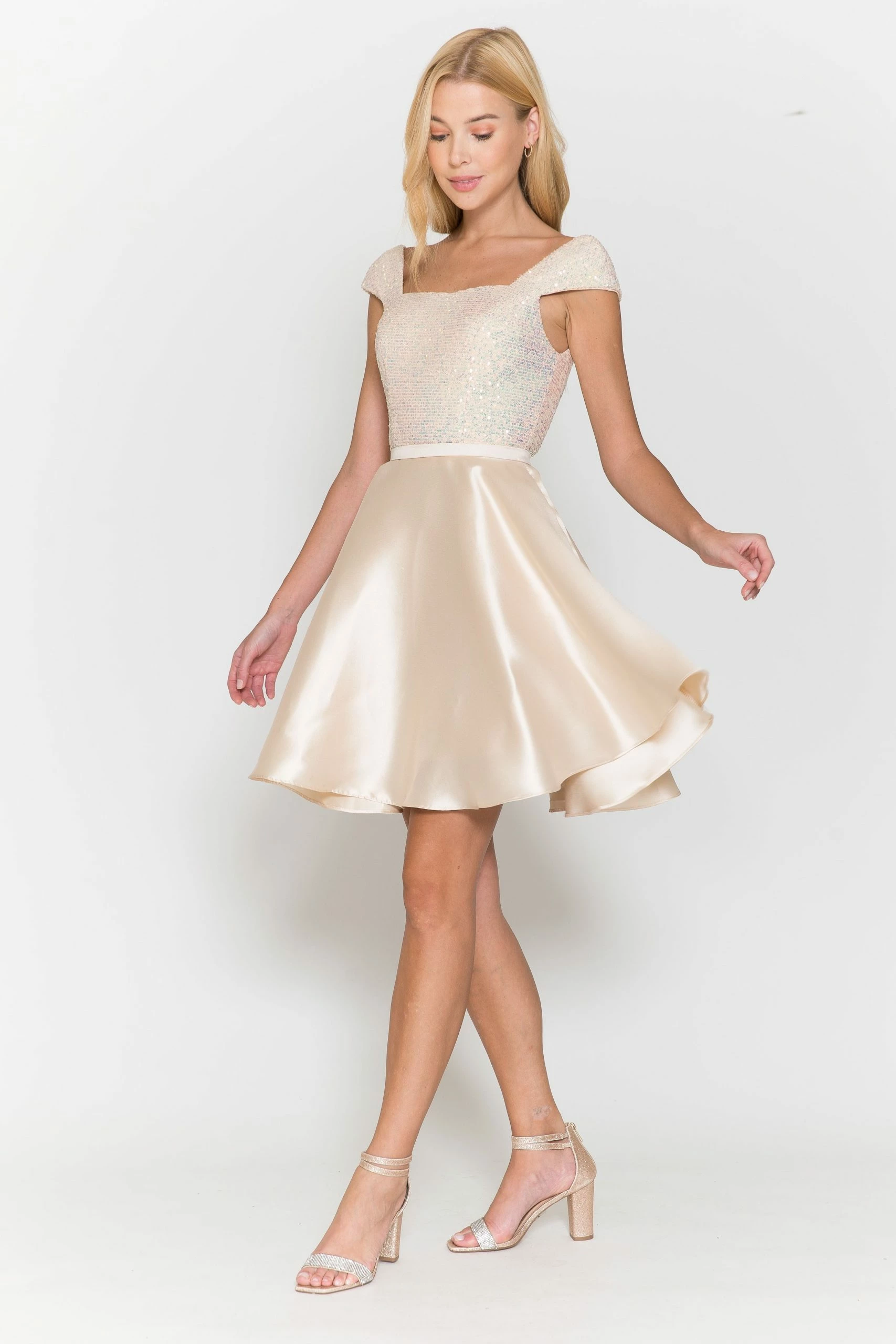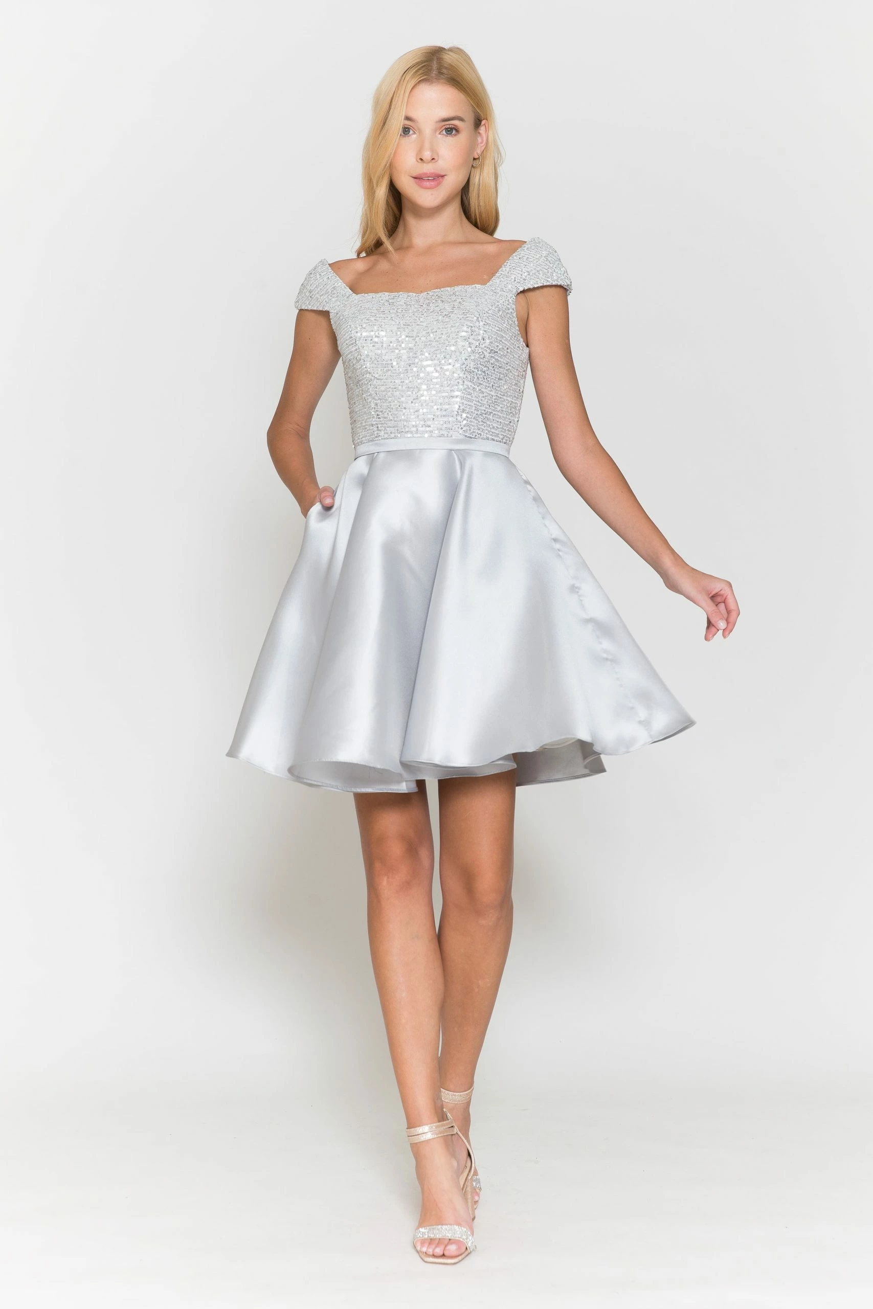 - Short Sequin Bodice Cap Sleeve Dress by Poly USA 8732