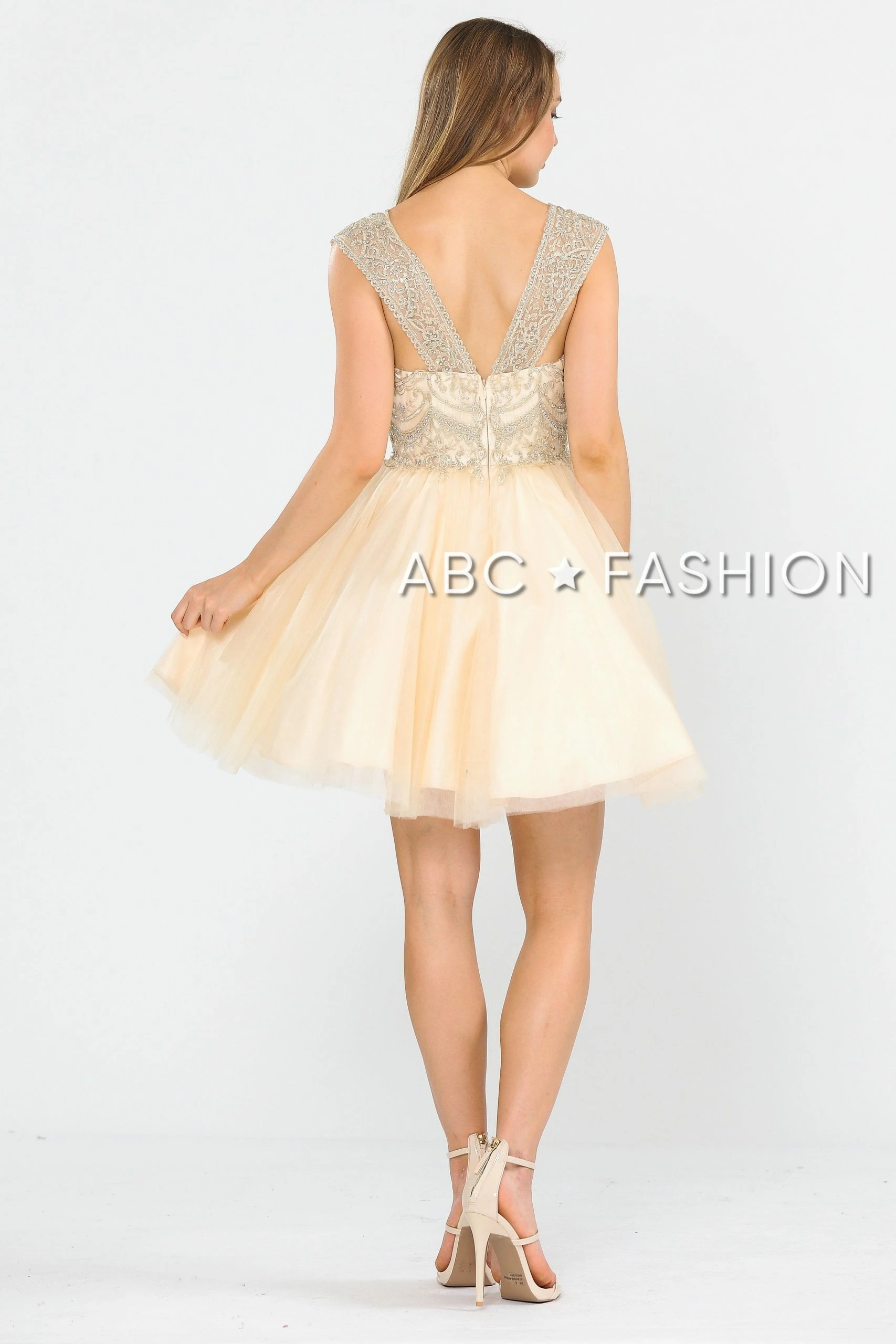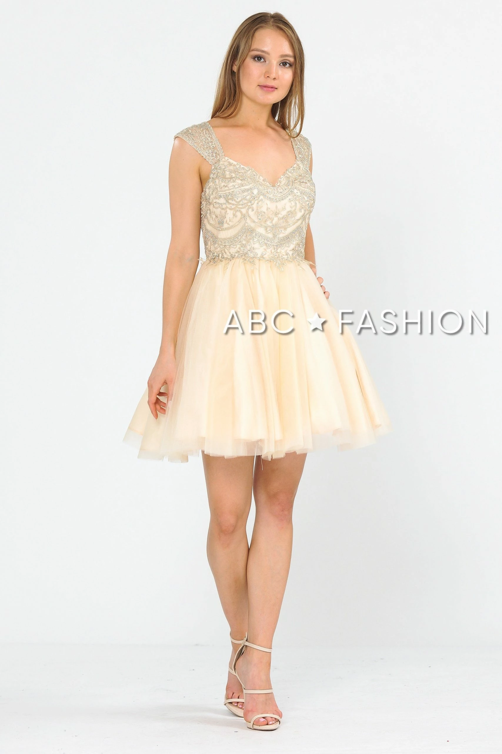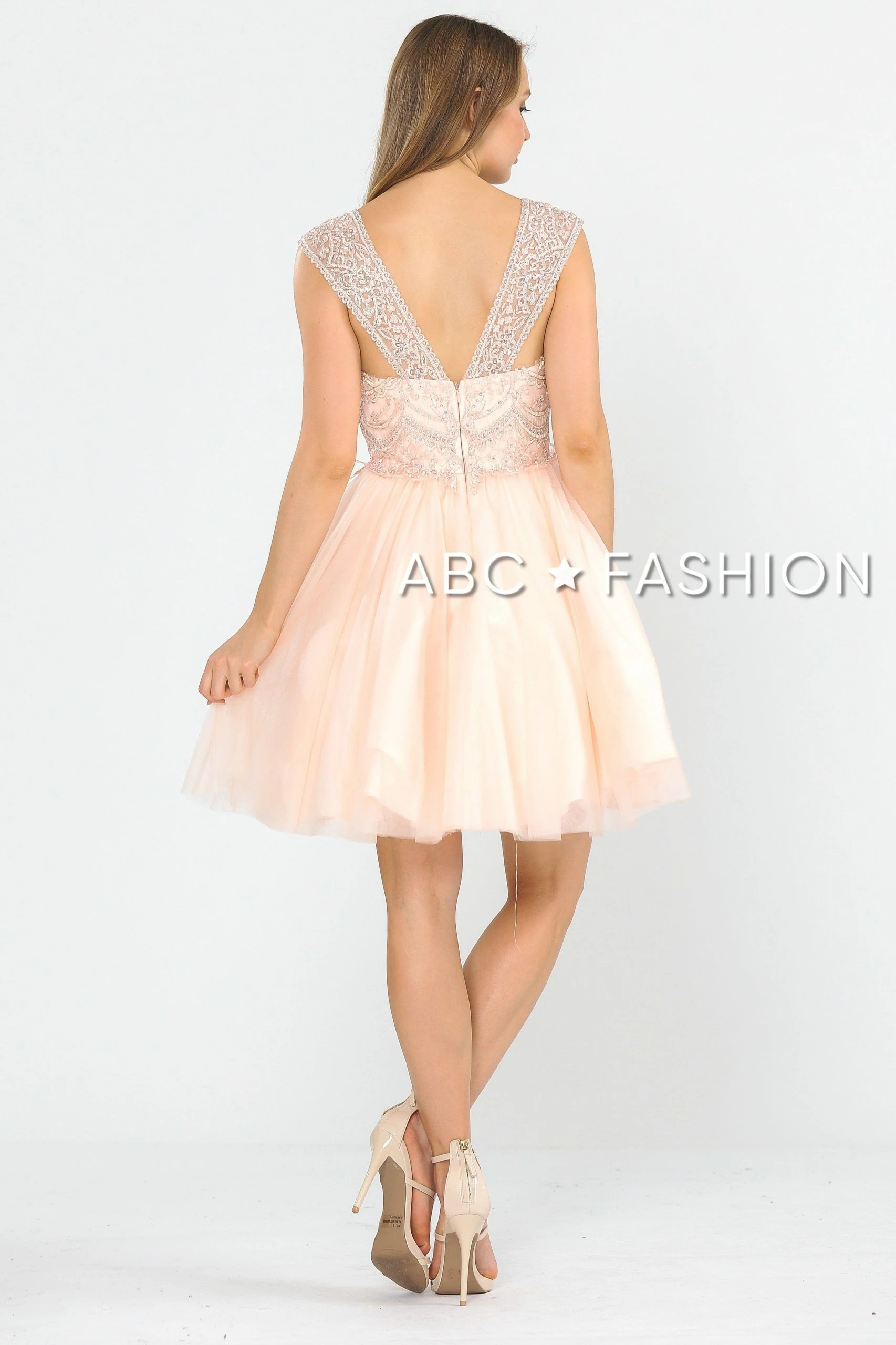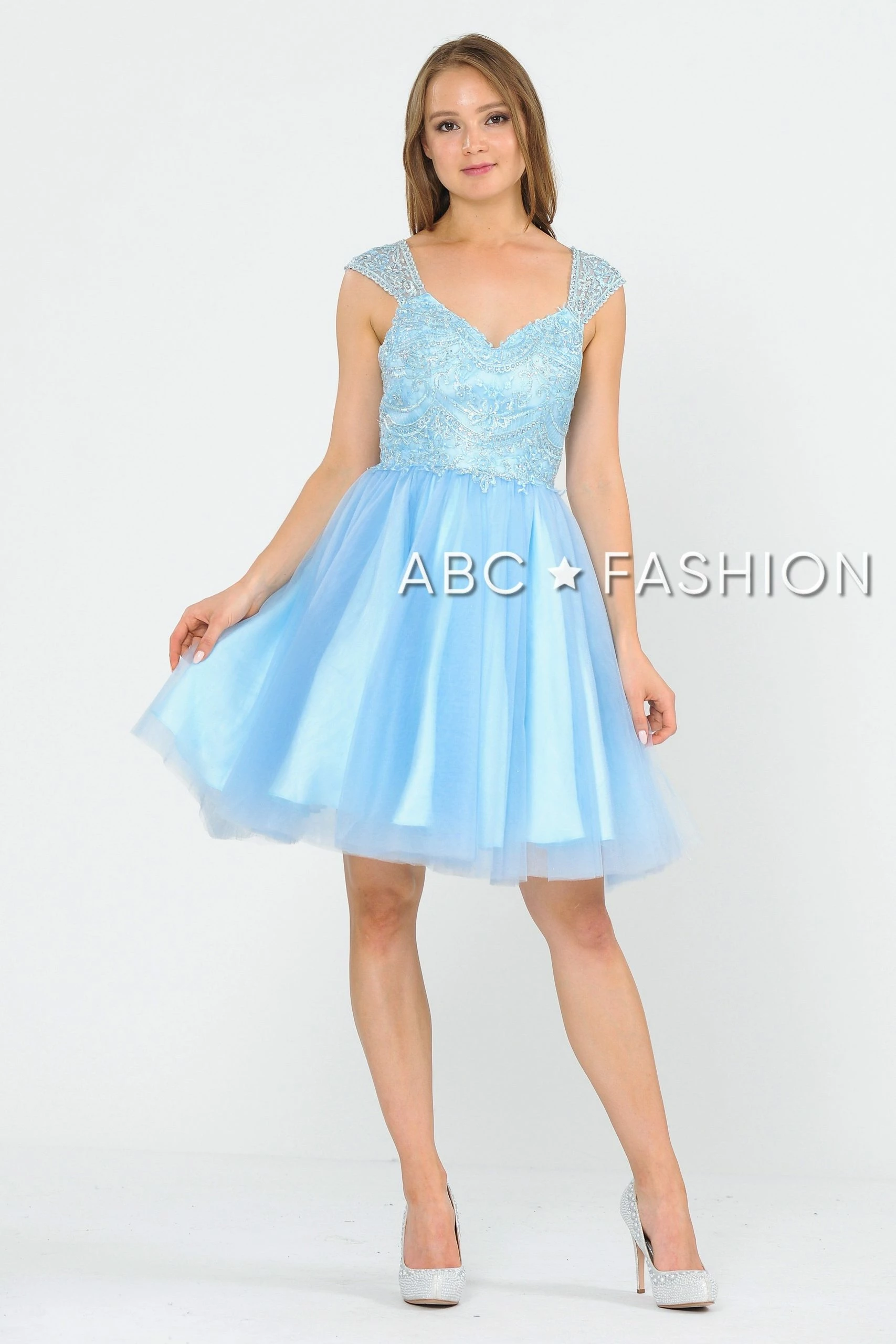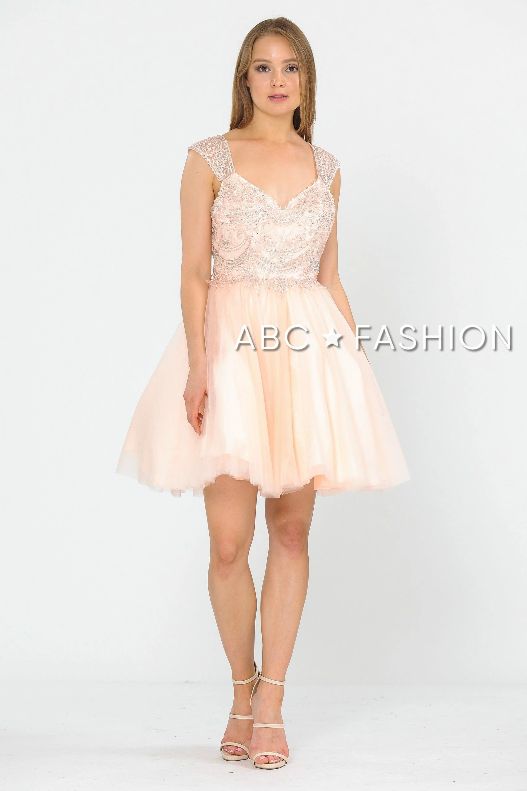 Turn heads in this sweetheart cocktail dress with beaded lace applique bodice by Poly USA 8284. This beautiful short sleeveless dress features a sweetheart neckline with wide shoulder straps, embellished appliqued top, open back with beaded details, short A-line tulle skirt, and a zipper closure. Affordably priced at $170, this short party dress is perfect for any formal event and will keep you on budget!
