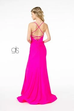 Make a grand entrance in this long sleeveless V-neck dress with beaded bodice by House of Wu Fiesta Gowns Collection 56371. This dreamy princess ball gown features a fully beaded V-neck bodice with spaghetti straps that crisscross at the open back. The floor length A-line skirt is combined with multiple layers of tulle and sparkled with shimmering stones. This look is finished with a corset back.