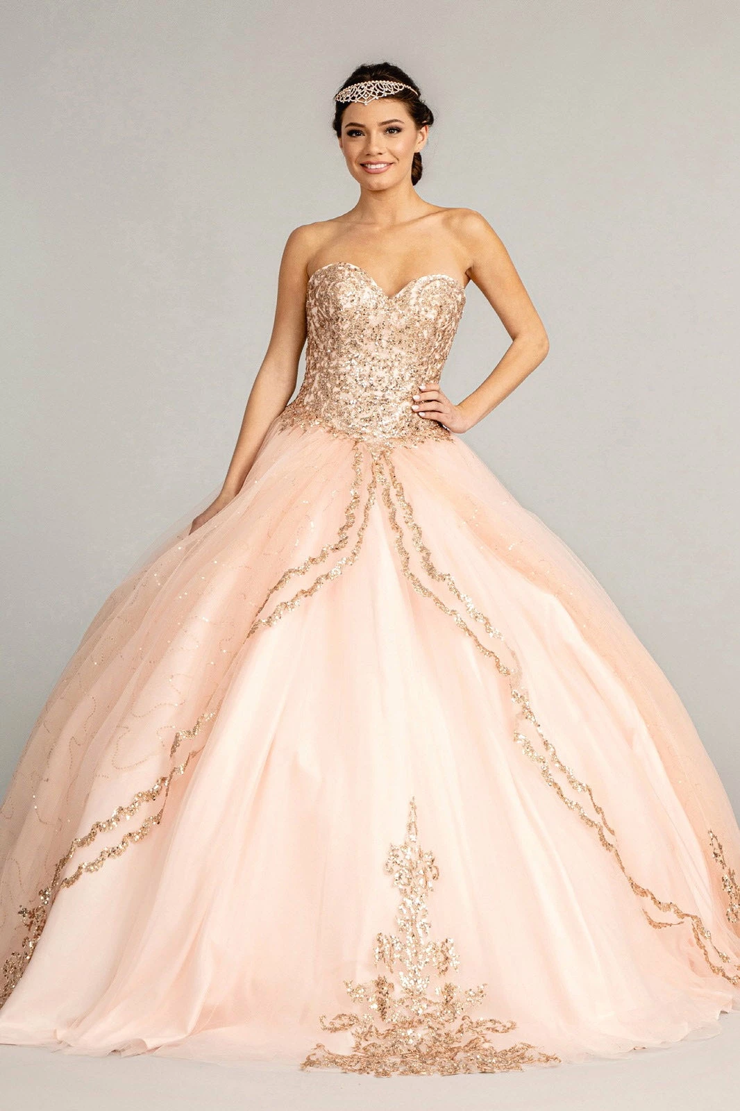 - Sequin and Glitter Embellished Sweetheart Quinceanera Dress